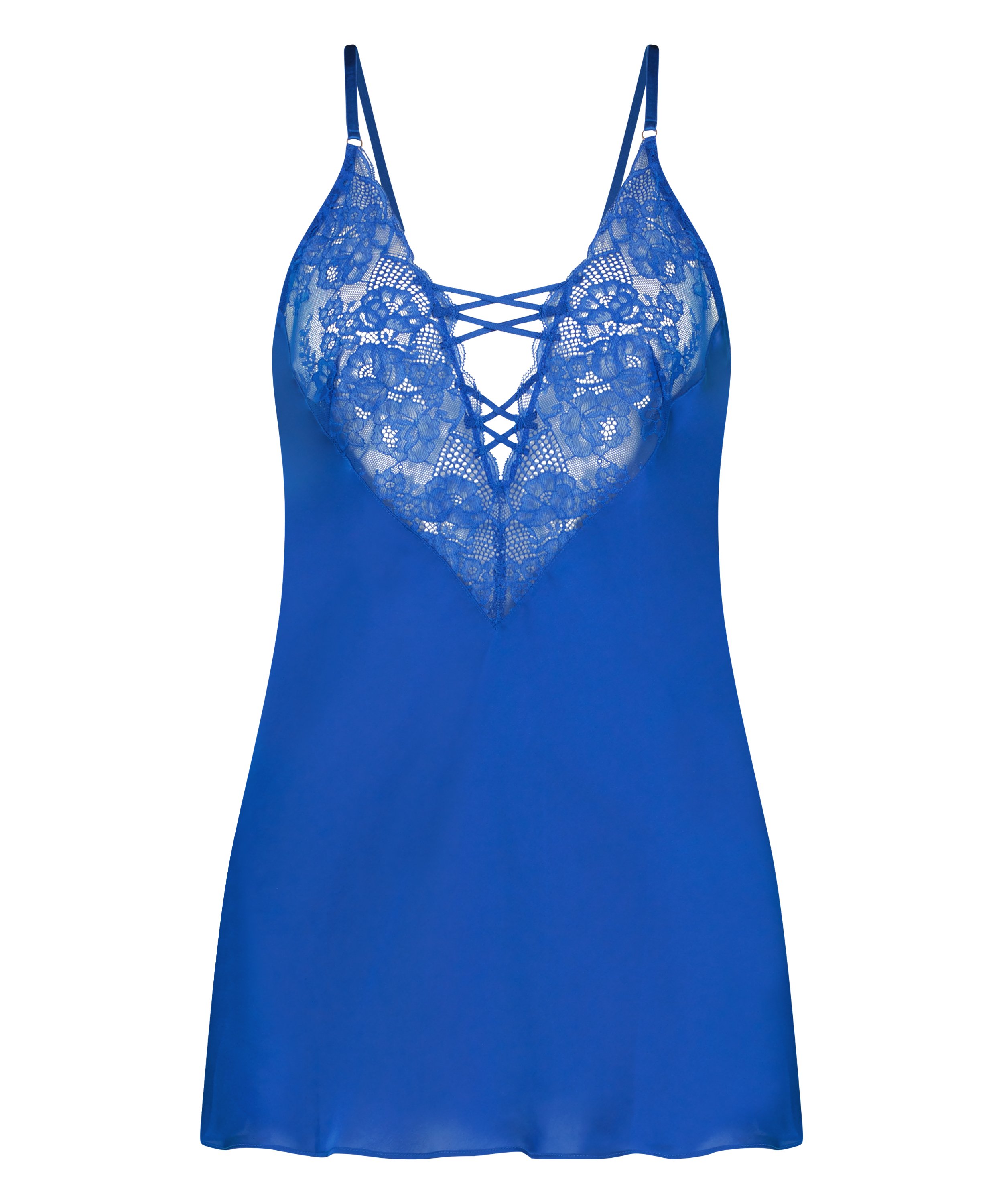 Se fantastisk ud i denne underkjole! Satin-look og følelse, pyntet med masser af detaljer med blondeblomster og snører. Match med en kimono!