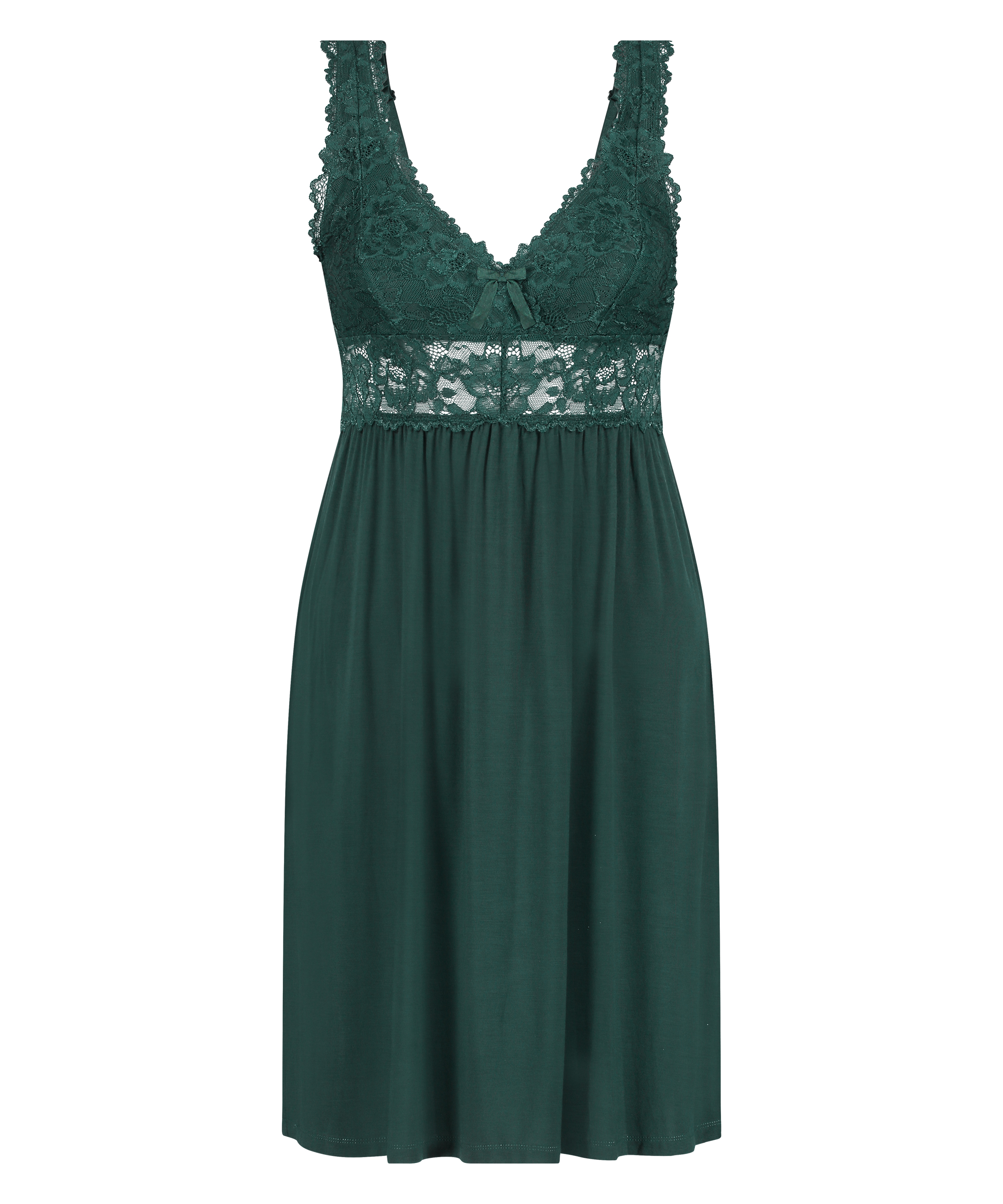 Lad din krop omslutte af denne smukke natkjole. Den har blondedetaljer og er meget feminin. Kombinér med en matchende kimono for et komplet look!