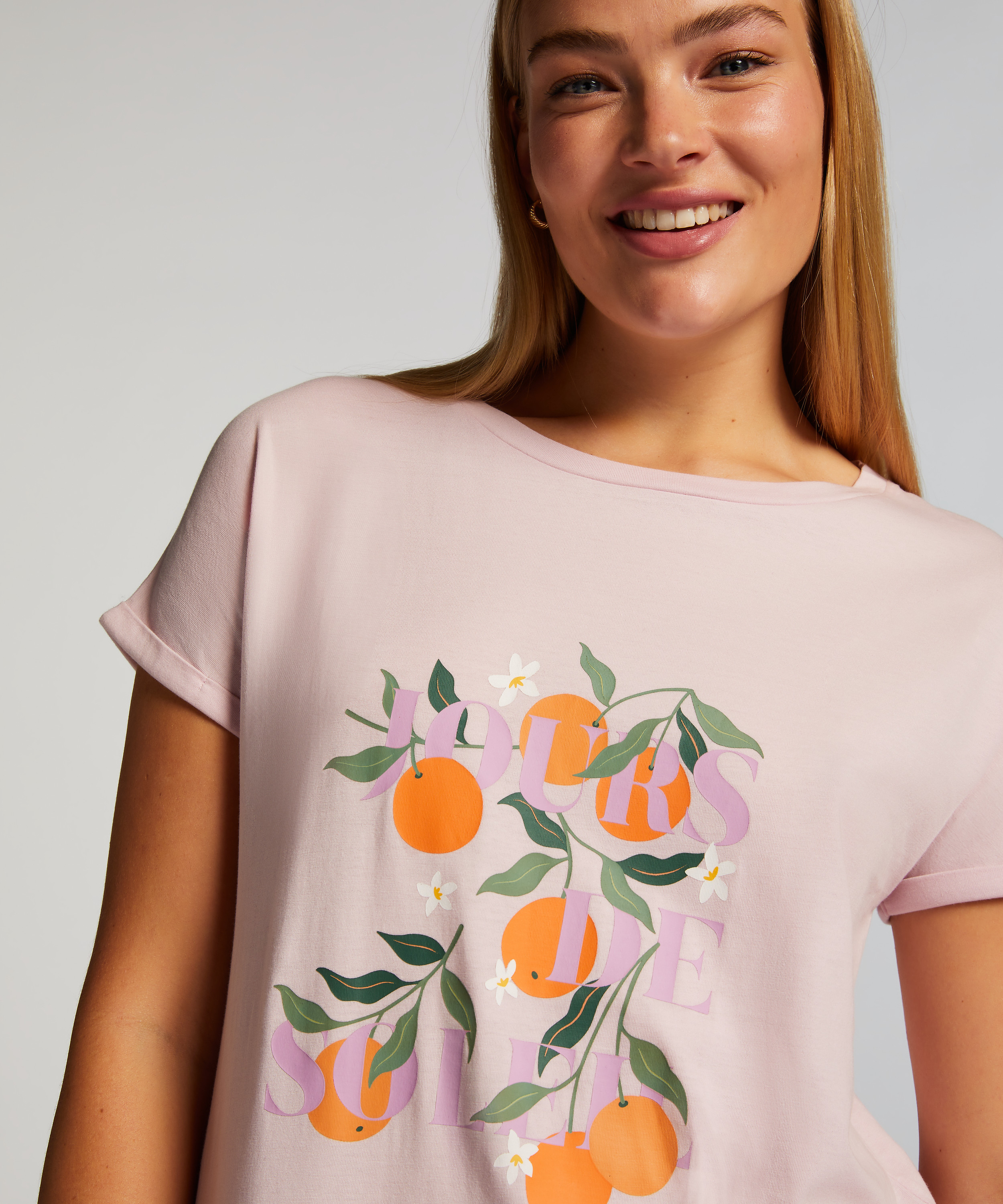 Denne natskjorte er dejligt behagelig at have på i sengen! Den falder blødt og er forsynet med et flot påtryk. Kan kombineres om aftenen med et par pæne hjemmesko fra kollektionen!