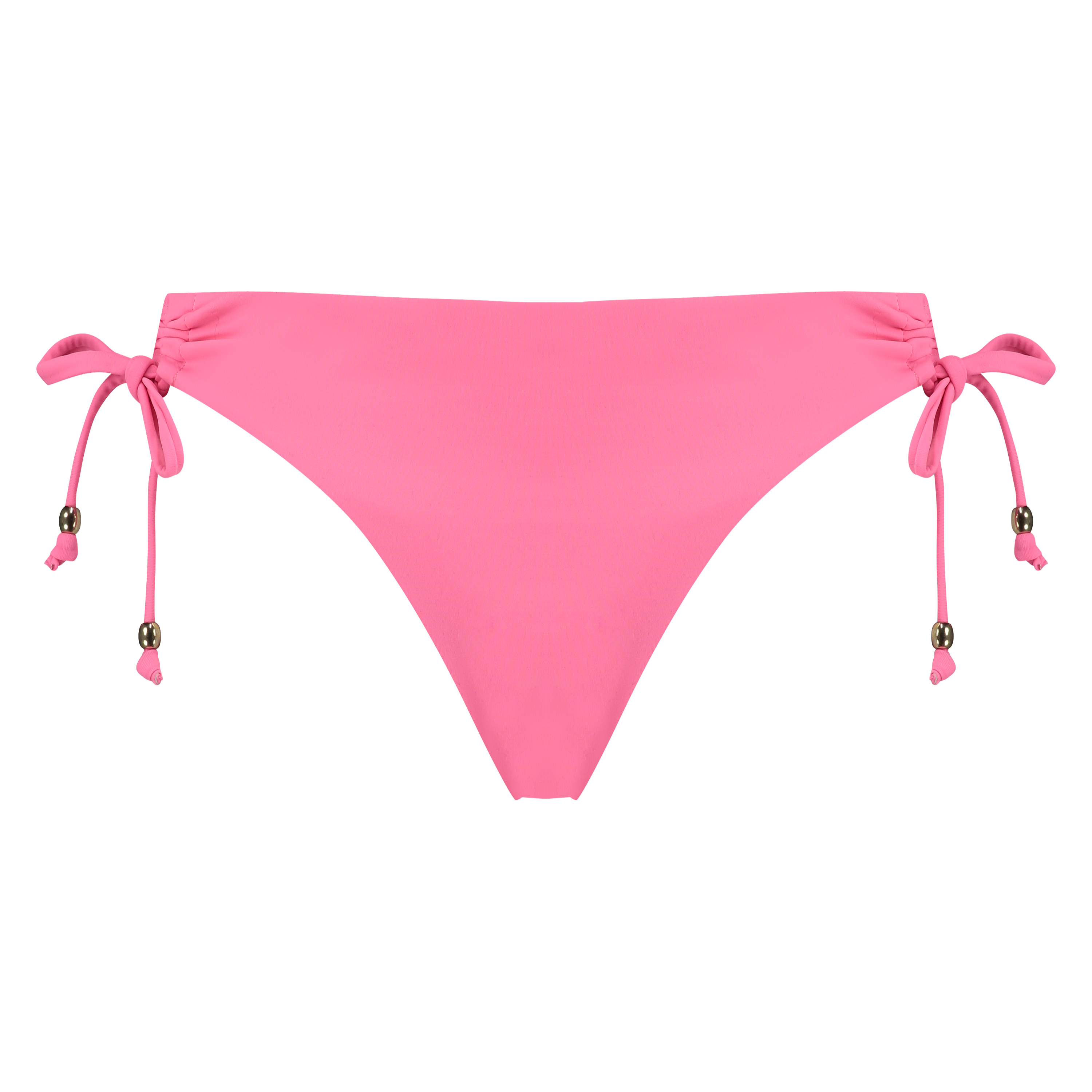 Bikinitrusse, der kan bindes med bindelukning i siderne. Stropperne har små perler i enderne.