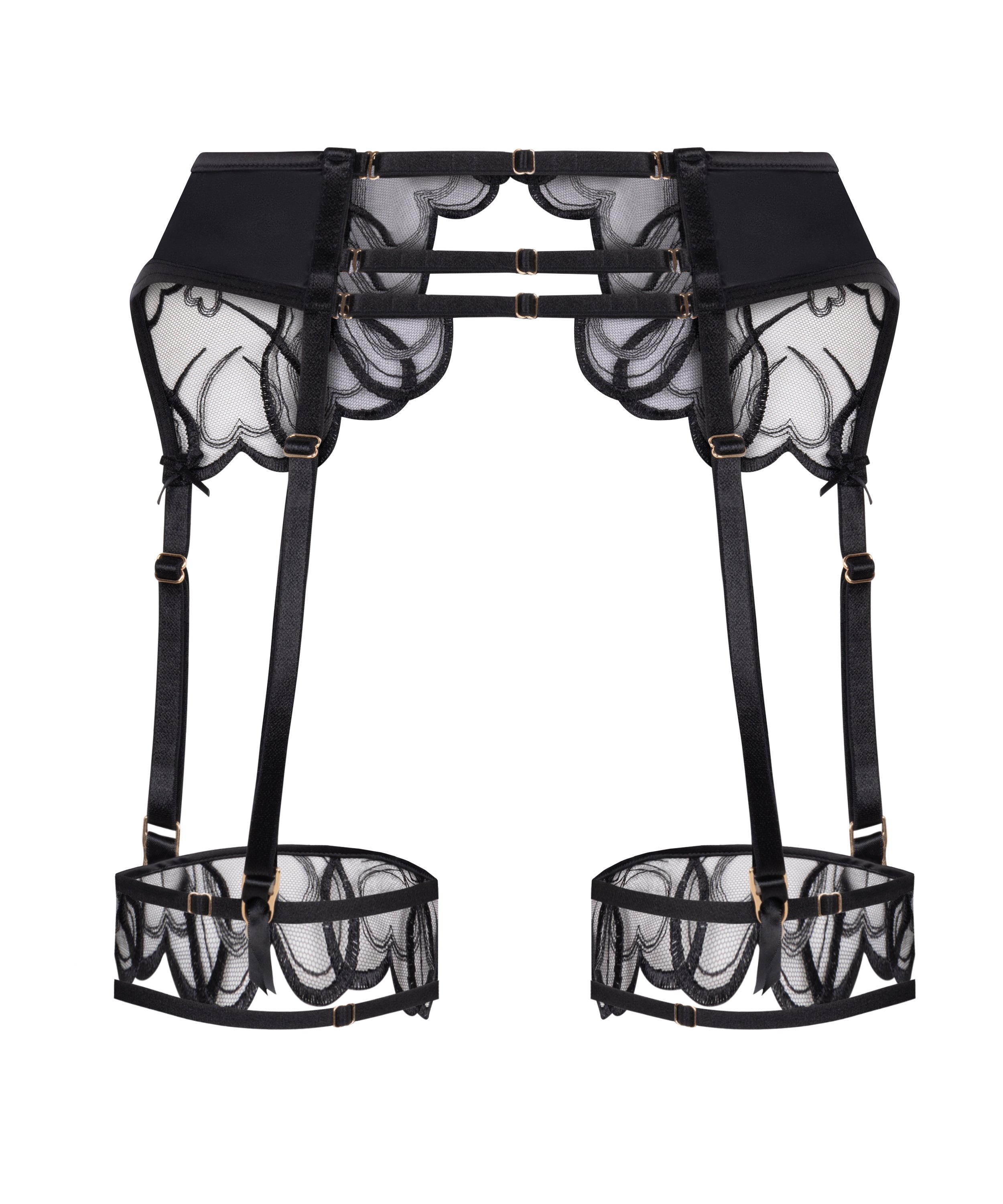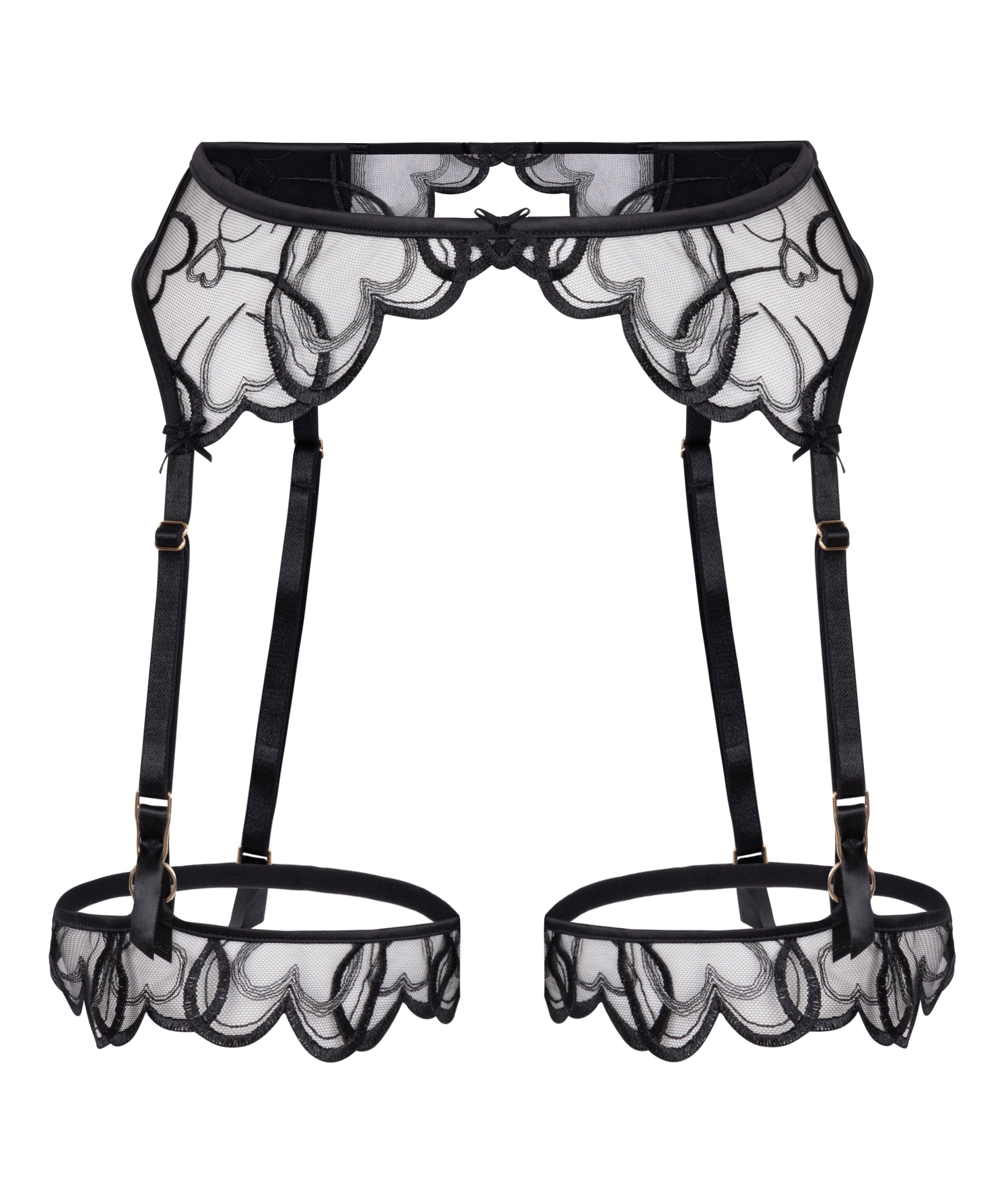 Tilføj et flirtende finish til dit lingerielook med denne romantiske hofteholder med fine hjerteformede blondedetaljer. Designet til at sidde behageligt i taljen og tilføjer et legende, men elegant touch til ethvert sæt. Justerbare stropper giver en perfekt pasform med dine yndlingsstrømper. Ideel at kombinere med den matchende bh og trusse!