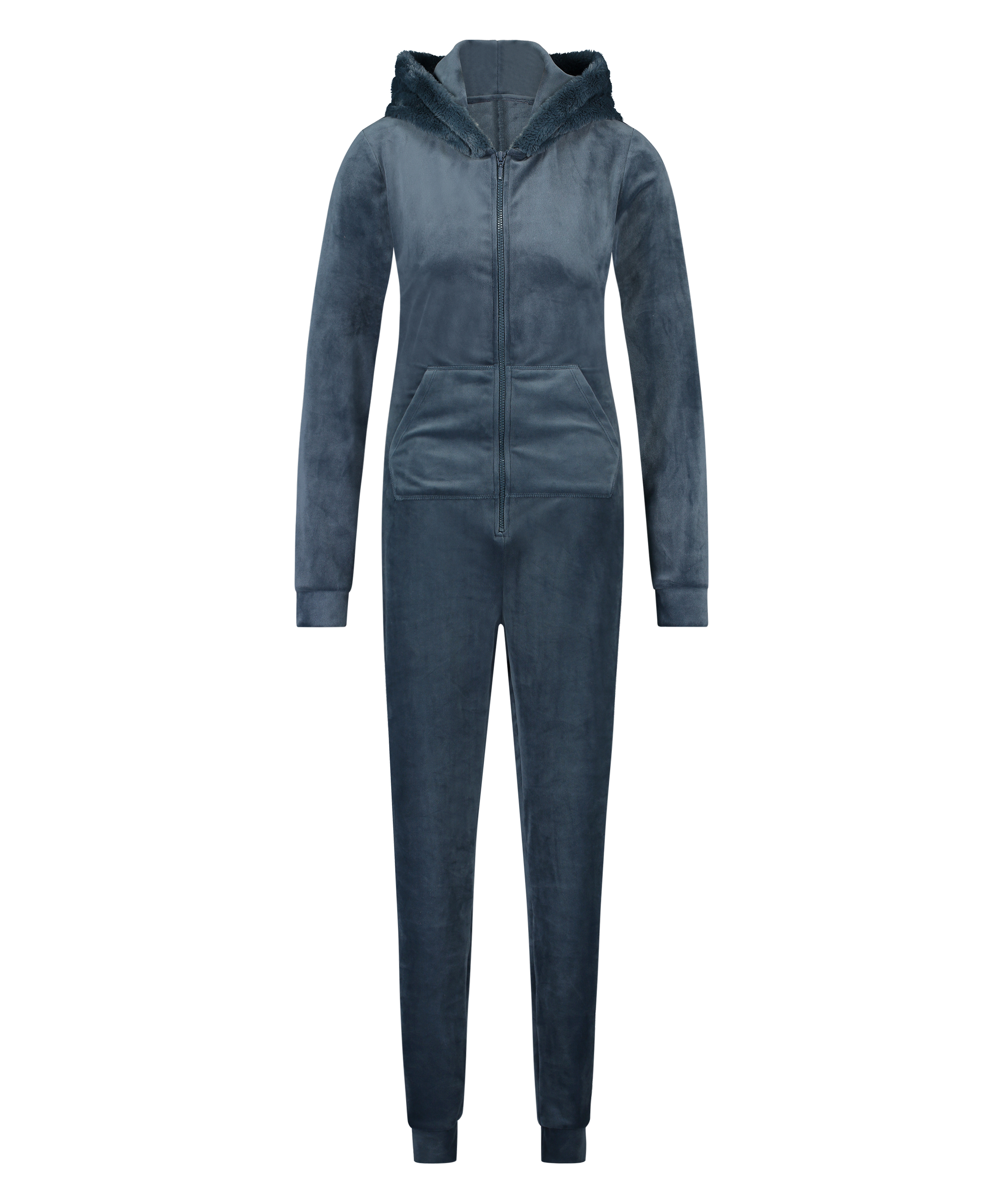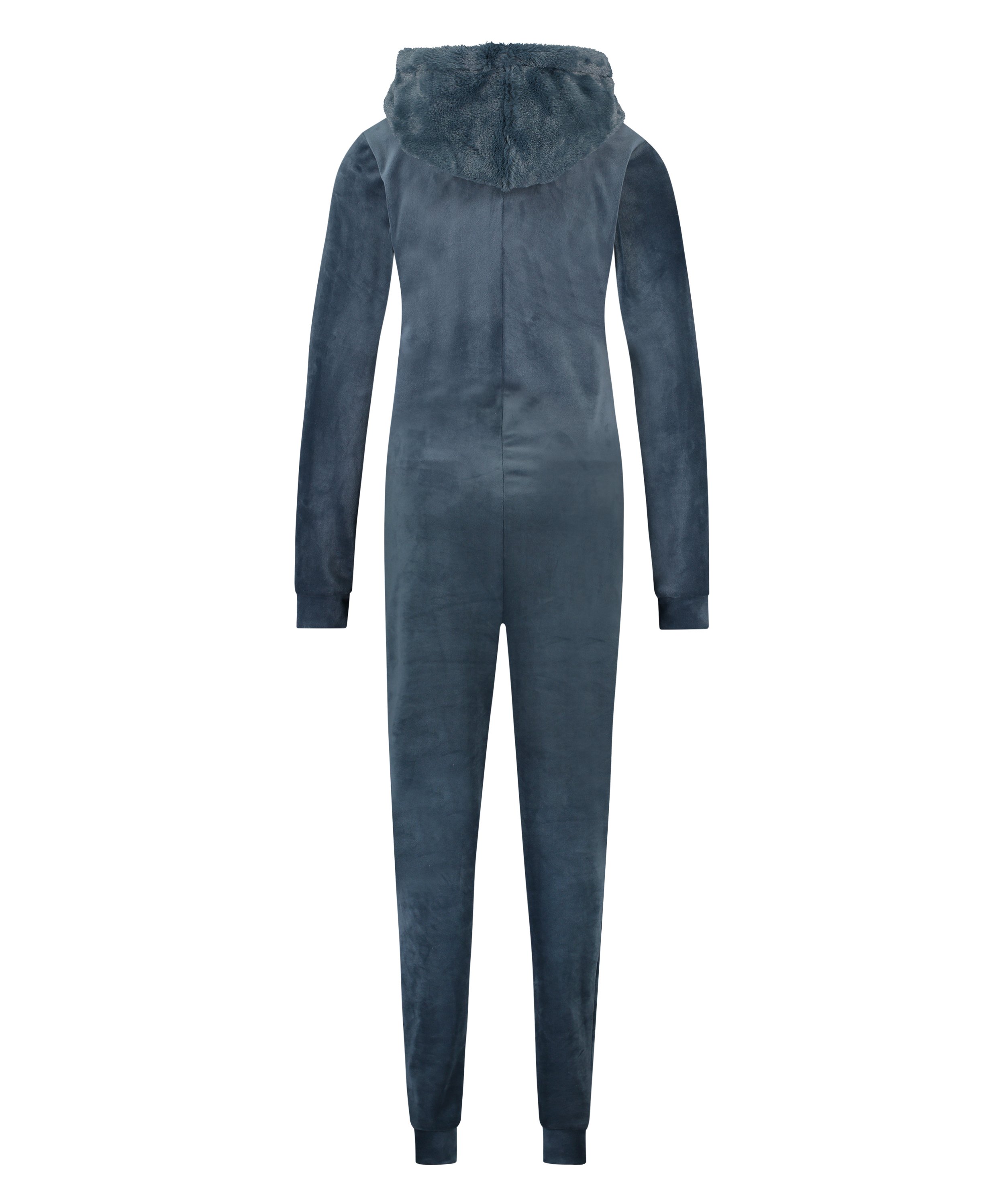 Squatting bliver behageligt med denne superbløde onesie-jumpsuit af velour. Onesie-jumpsuiten er med lommer på forsiden og har lynlås. Den er forsynet med en lækker og fluffy hætte.