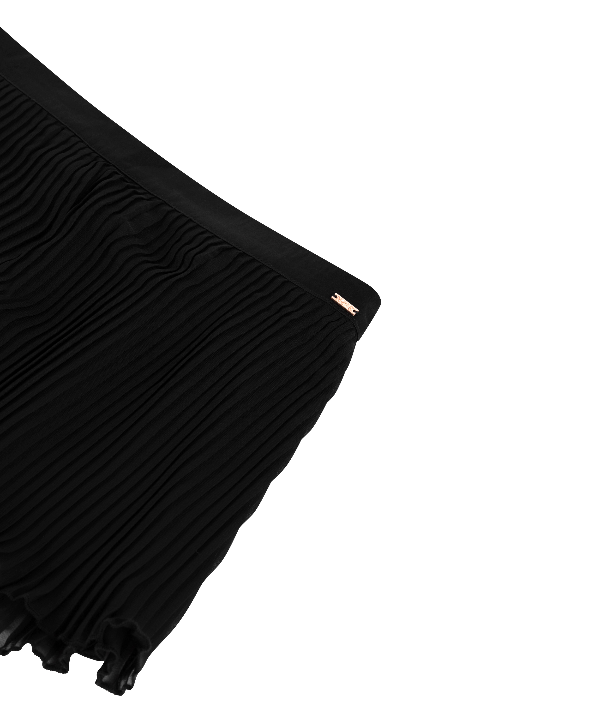 Vælg ubesværet elegance med disse stilfulde shorts til natten! Den rynkede elastiske linning giver en behagelig pasform, mens det foldede stof tilføjer et raffineret touch. fremstillet af et let materiale med en let gennemsigtigt effekt, smuk drapering for et sofistikeret look.