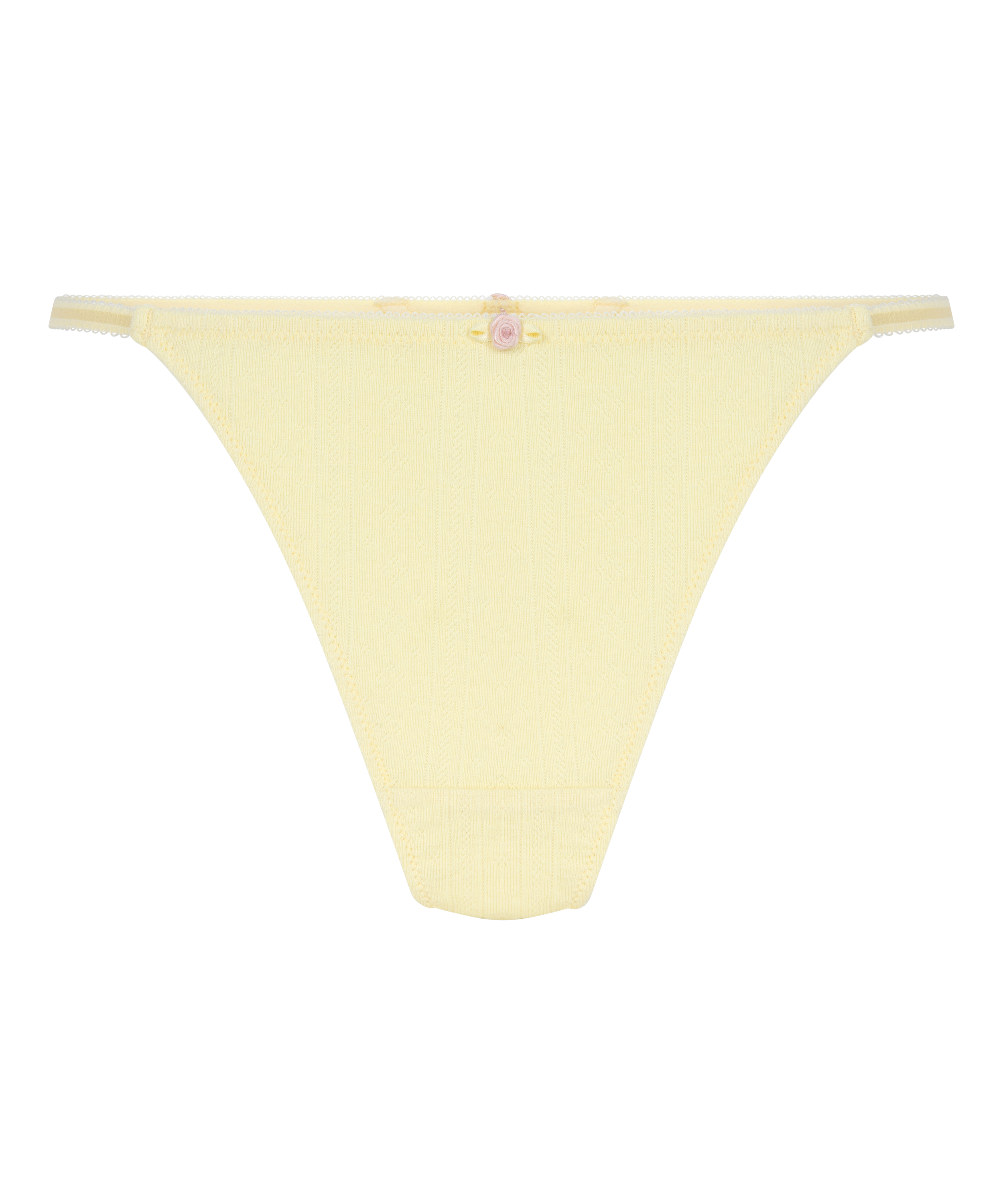 Romantik møder moderne i denne g-streng. Fremstillet af pointelle-stof med en tekstureret finish, kombinerer den hverdagskomfort med en ubesværet chik stil. Designet med de høje ben forlænger din silhuet, mens rosendetaljerne foran tilføjer et sødt, feminint touch.