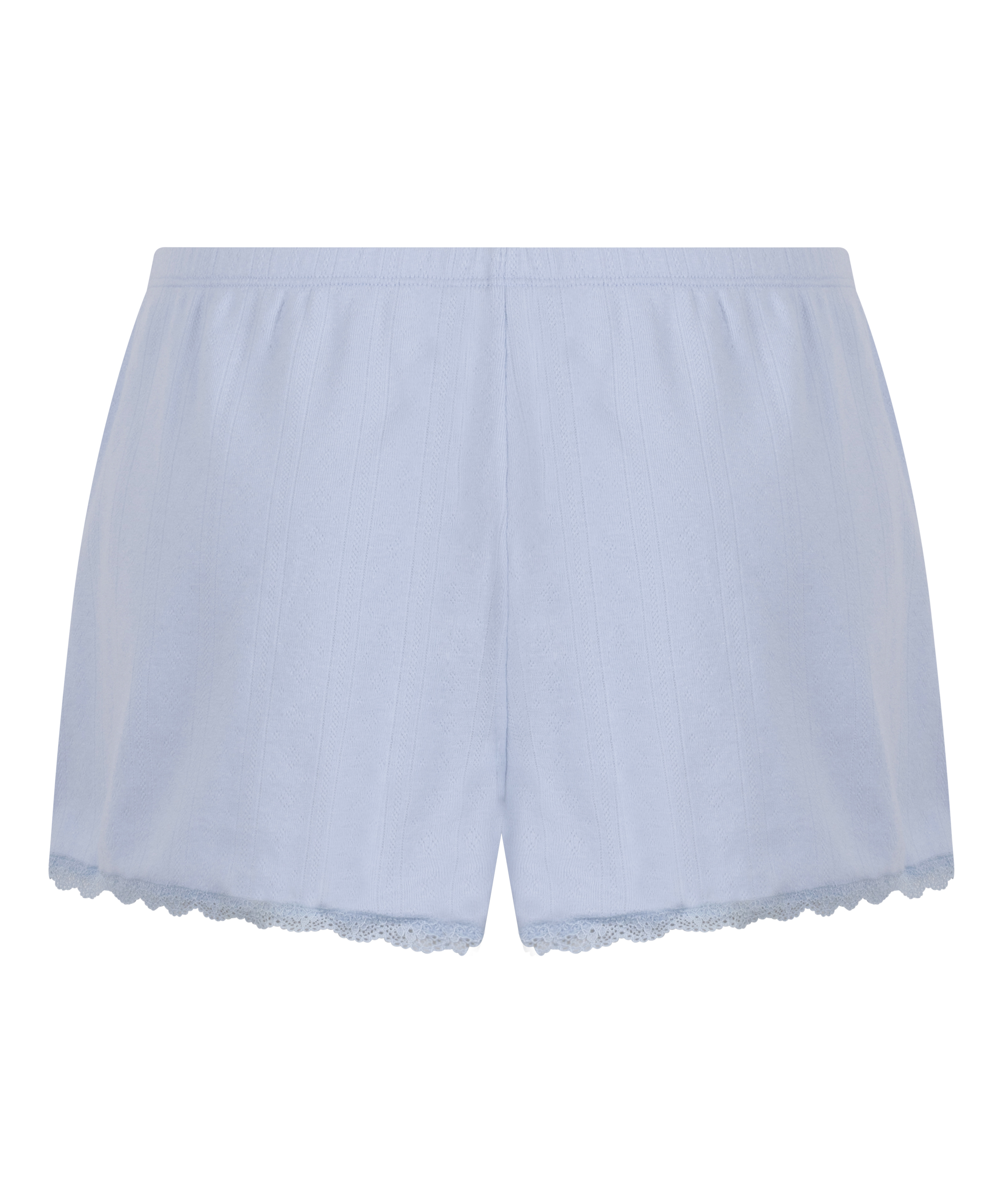 Hold dig komfortabel og stilfuld med vores shorts. Fremstillet i blødt pointellestof, har disse shorts et fint struktureret mønster, som giver et fint strejf til dit fritidstøj. Blondedetaljer løfter looket, mens den elastiske linning giver en sikker og behagelig pasform.