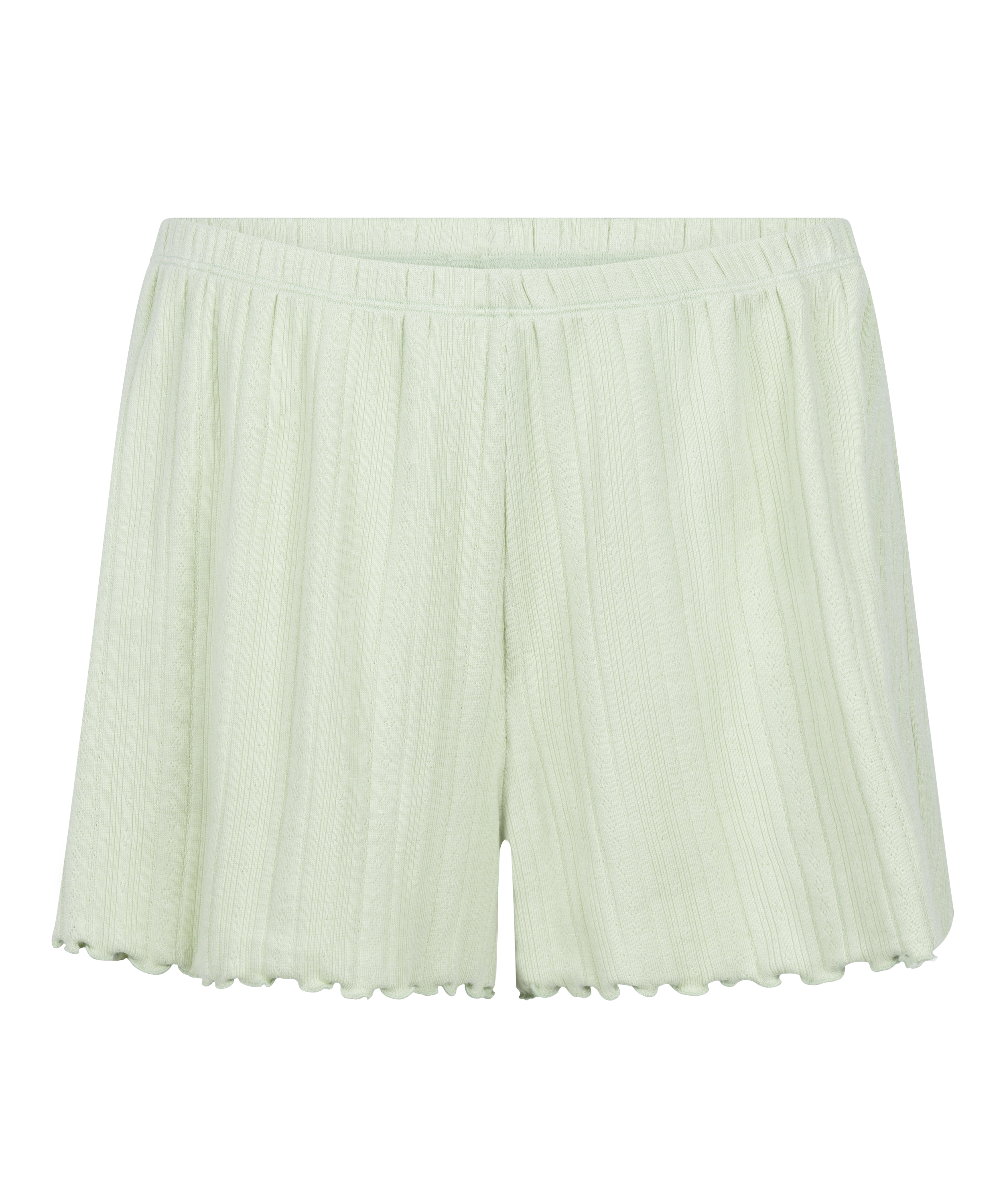 Sød, blød og skabt til at slappe af med stil! Disse pointelle-shorts har en behagelig elastisk linning og legende flæser, hvilket gør dem til et drømmende valg til afslappede og hyggelige øjeblikke.