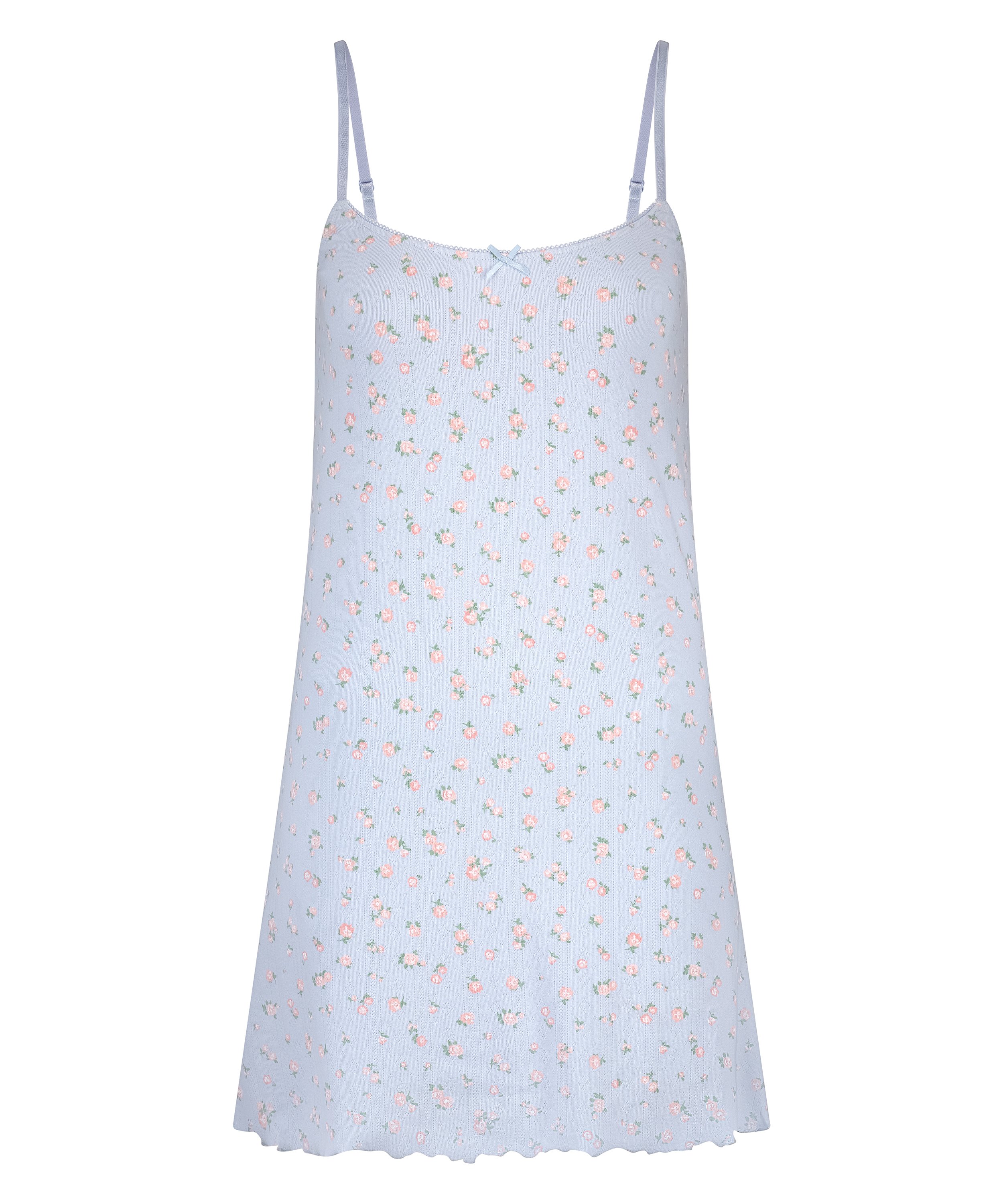 Denne charmerende underkjole er et must-have til din garderobe! Fremstillet i en blød bomuld-elastanblanding giver den en behagelig pasform, med fine spaghettistropper. Den flæsede nedre kant og den lille sløjfedetalje foran på halsudskæringen tilføjer et strejf af elegance og leg.