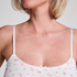 Denne charmerende underkjole er et must-have til din garderobe! Fremstillet i en blød bomuld-elastanblanding giver den en behagelig pasform, med fine spaghettistropper. Den flæsede nedre kant og den lille sløjfedetalje foran på halsudskæringen tilføjer et strejf af elegance og leg.