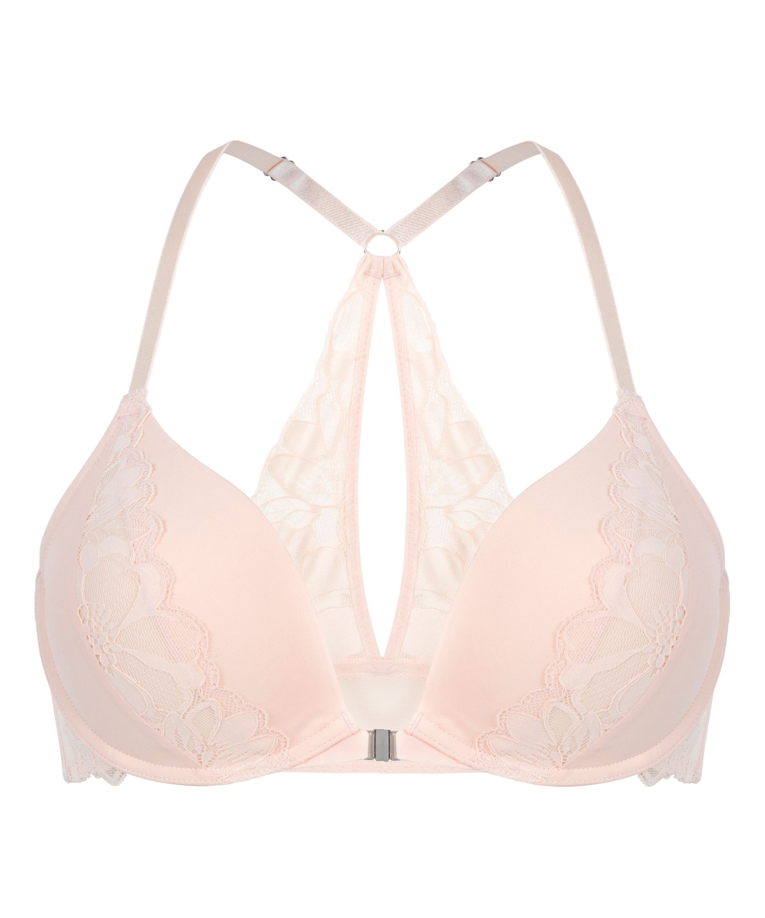 Udvid din lingerisamling med vores Ali-bh! Med vatterede pushup-skåle dekoreret med blonder og et delikat blondedesign giver denne bh elegance og charme. Med en praktisk lukkeklemme foran er den både stilfuld og praktisk. Fuldend sættet ved at kombinere det med de matchende trusser for et fantastisk ensemble.