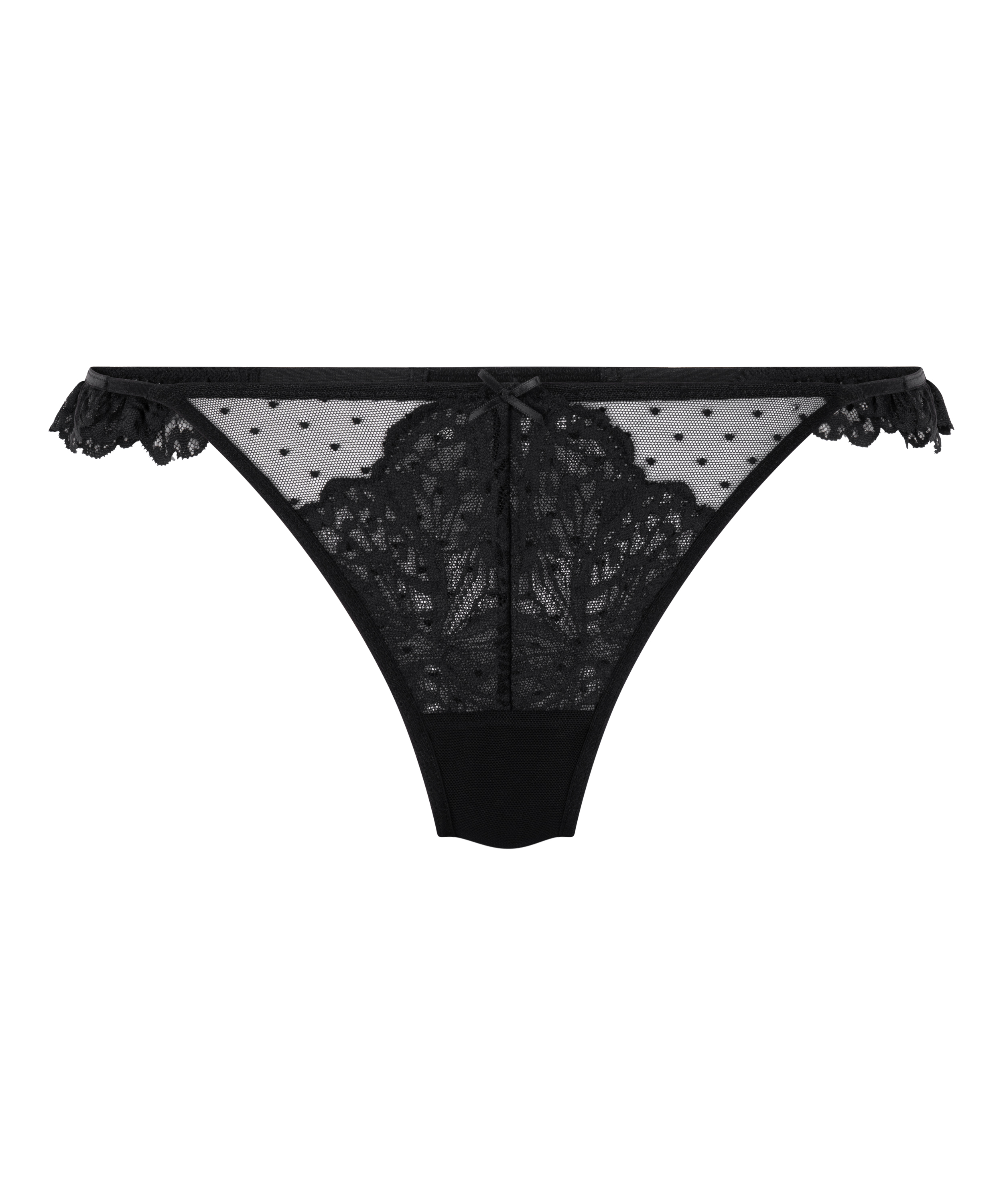 Er denne g-streng ikke bare sød? Den har både blonder og mesh-detaljer og en smuk sløjfe foran. Sæt den sammen med matchende dele for at fuldende looket.