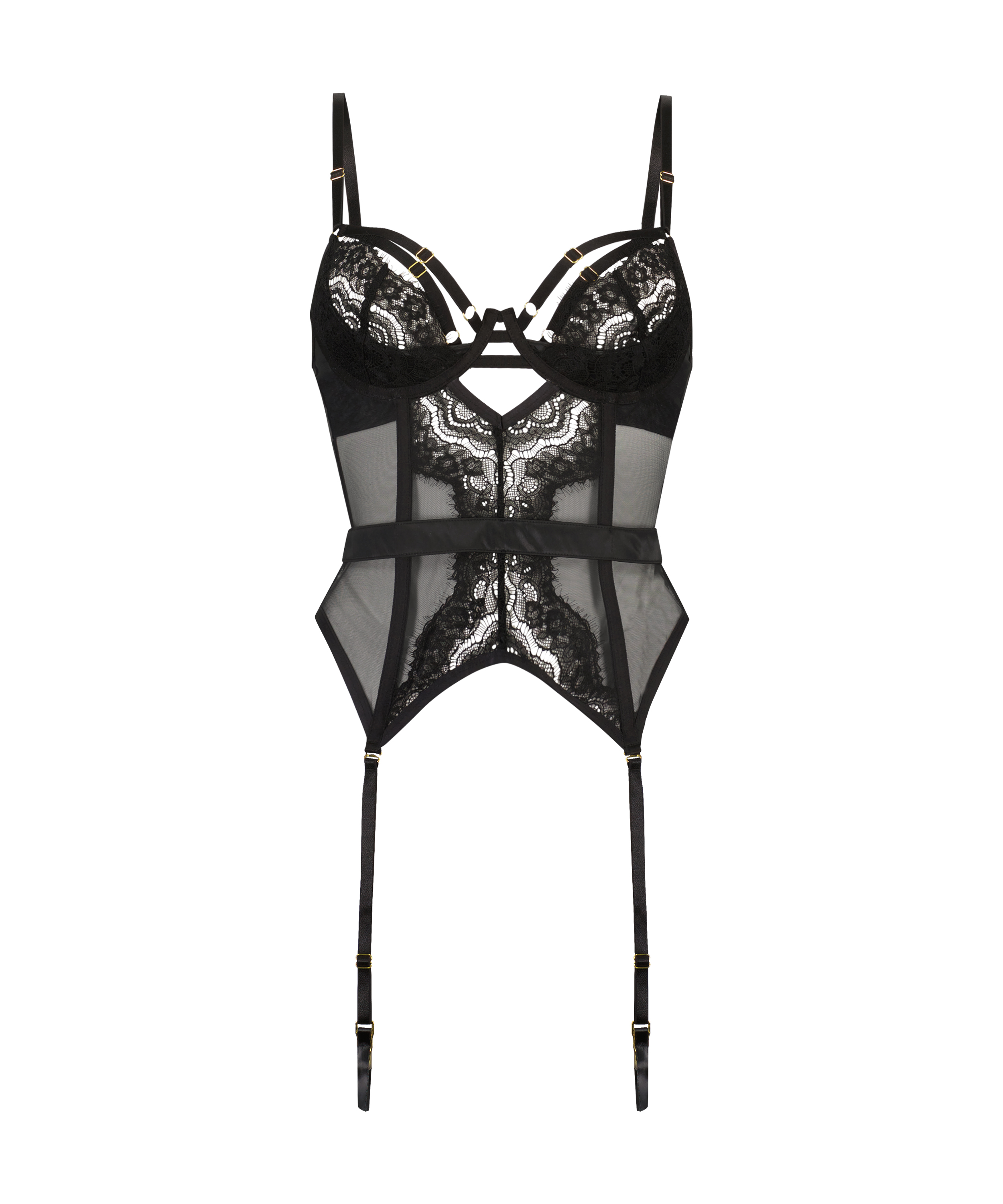 Du vil føle dig uimodståelig sexet i denne bustier! Bustieren er forsynet med super fine blonder og mesh. Bodyen har hofteholdere, så du kan være sexet, samtidig med at du har dine yndlingsstrømper på! Kombinér med den rigtige trusse for at fuldende dit look Del af Private-kollektionen.