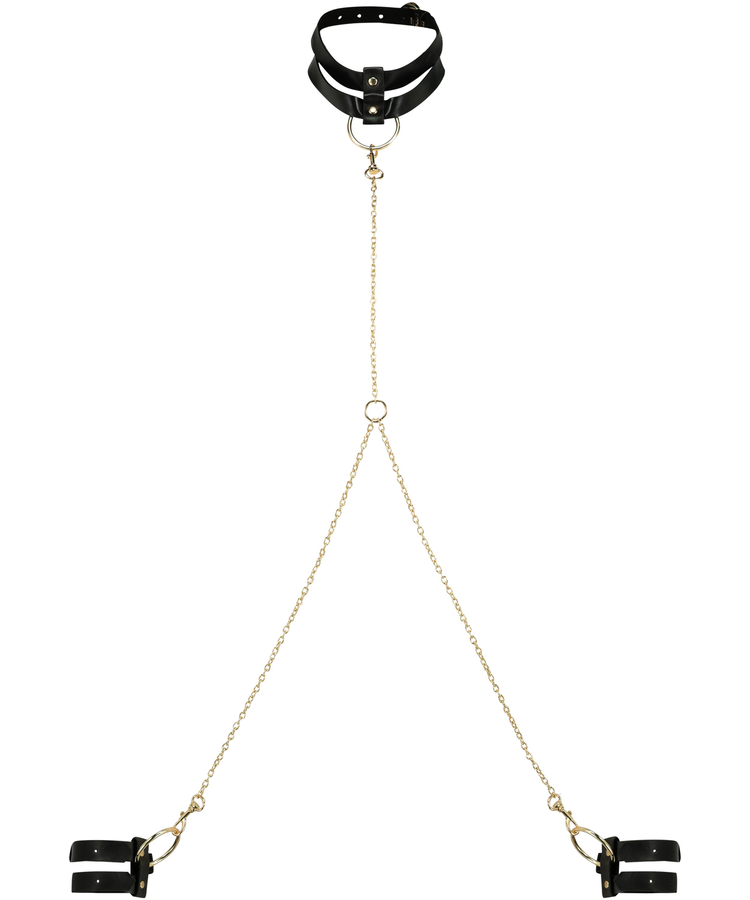 Intet er mere spændende end et chokersæt. Choker- og håndjernssættet i læderlook tager dig tilbage til forføreriske basics. Fremstillet med vores signaturguldfarvede hardware. Bær dette powerpiece over et af vores spændende Private-sæt.