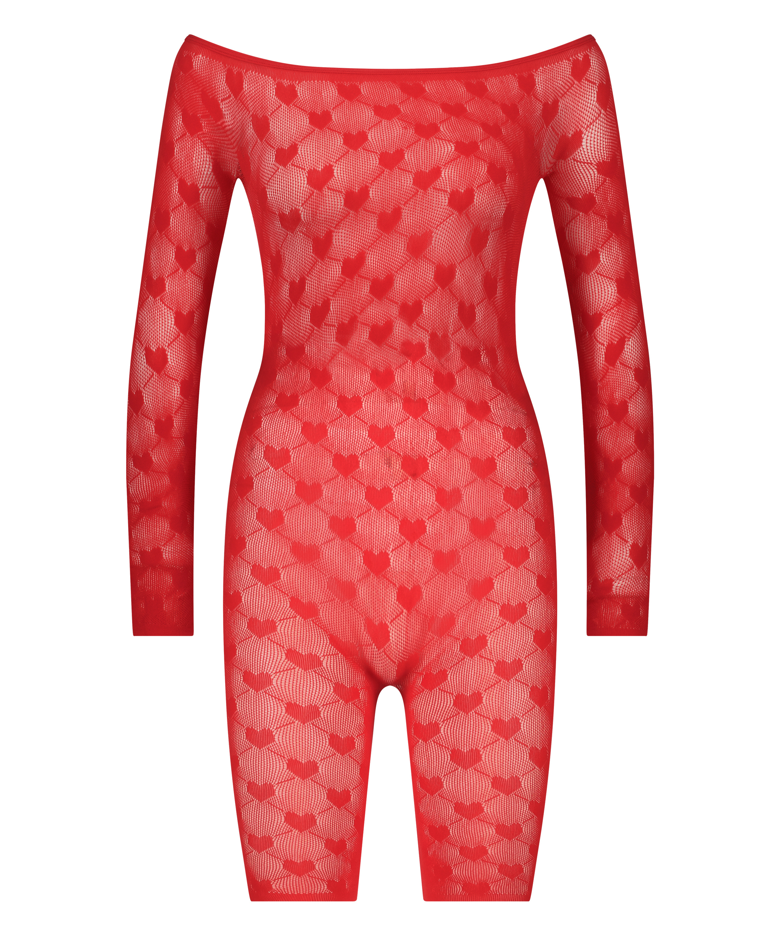 Føl dig romantisk i denne søde dragt med hjerte på! Et helt igennem halvgennemsigtigt look med broderede hjerter over det hele. Super behagelig med de lange ærmer og shorts. En del af Private-kollektionen.