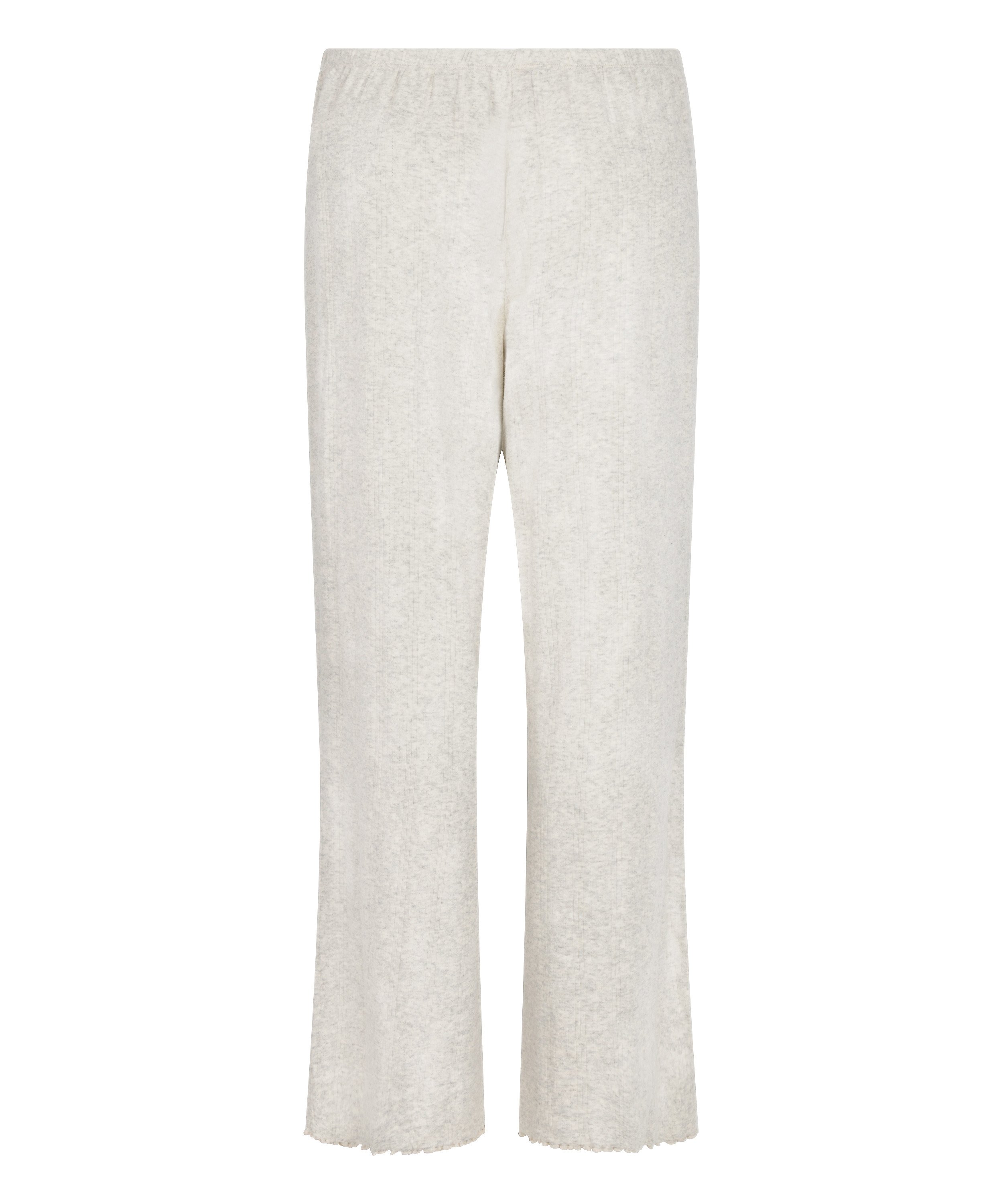 Slap af i ultimativ komfort med vores løstsiddende pointelle-pyjamabukser. Lavet af let, åndbart stof med pointelle-detaljer, giver disse bukser en blød fornemmelse og subtil struktur, der føles skånsom mod huden. Den afslappede silhuet og elastiske linning sikrer en hyggelig pasform, perfekt til afslapning eller en rolig nats søvn.