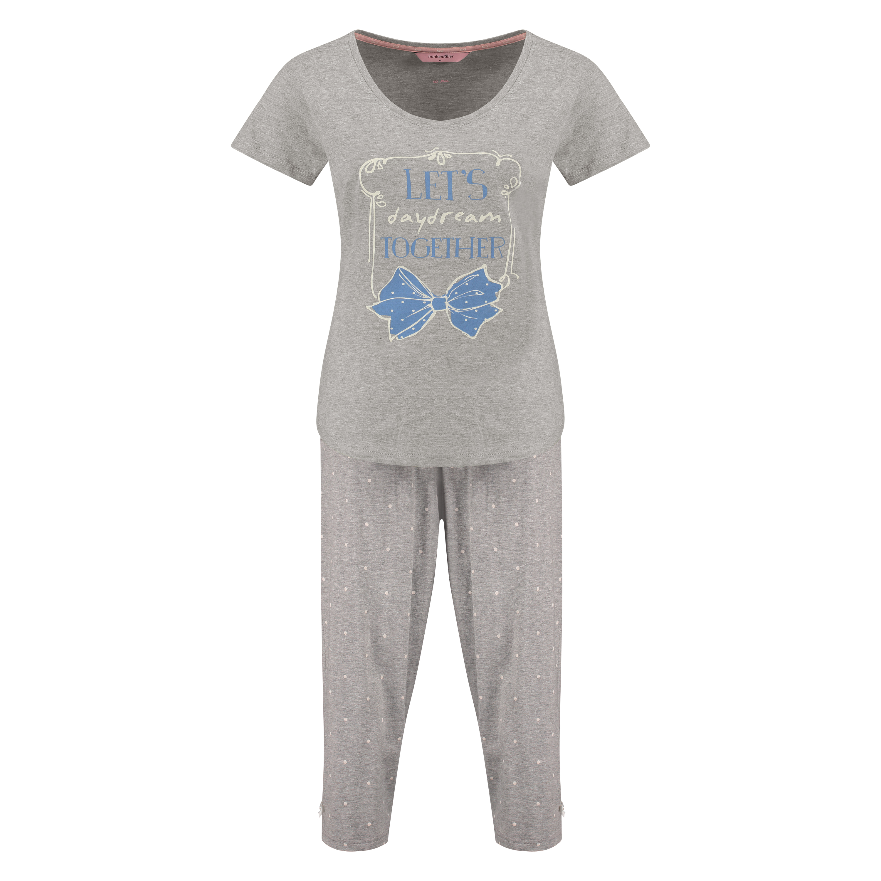 Lets daydream together: This pyjama set consists of a pair of long pants and a short-sleeved top. The top features a print and text. The pants are finished with two sweet bows at the bottom.