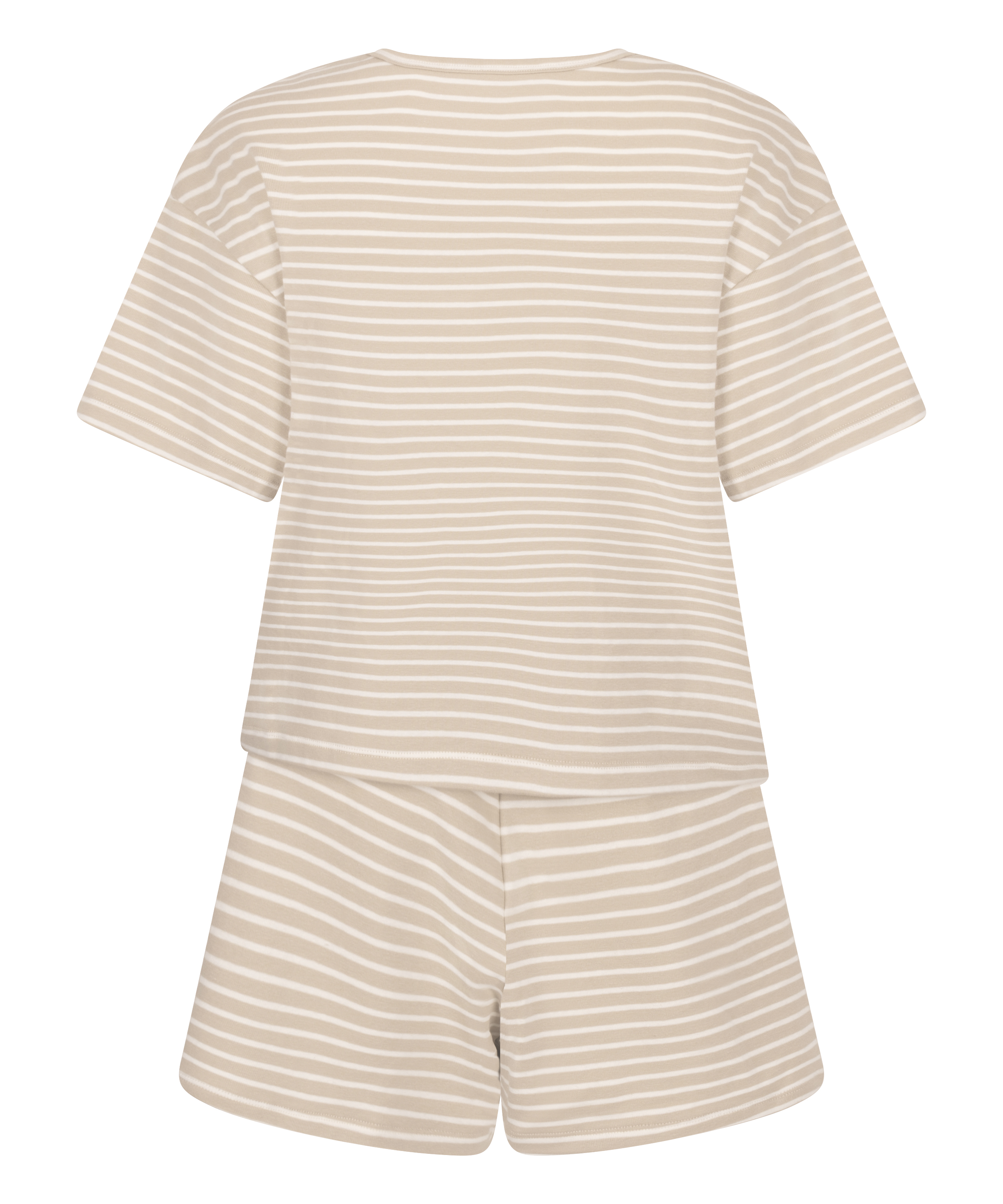 Slap af med stil og komfort i dette hyggelige pyjamasæt. Det indeholder et par shorts og en matchende T-shirt med korte ærmer. Sættet er lavet af jerseystof og designet til at bevæge sig med dig, så du får en perfekt nats søvn eller en afslappende stund. Den afslappede pasform gør det til en favorit på varme nætter – et must-have til din natskuffe.
