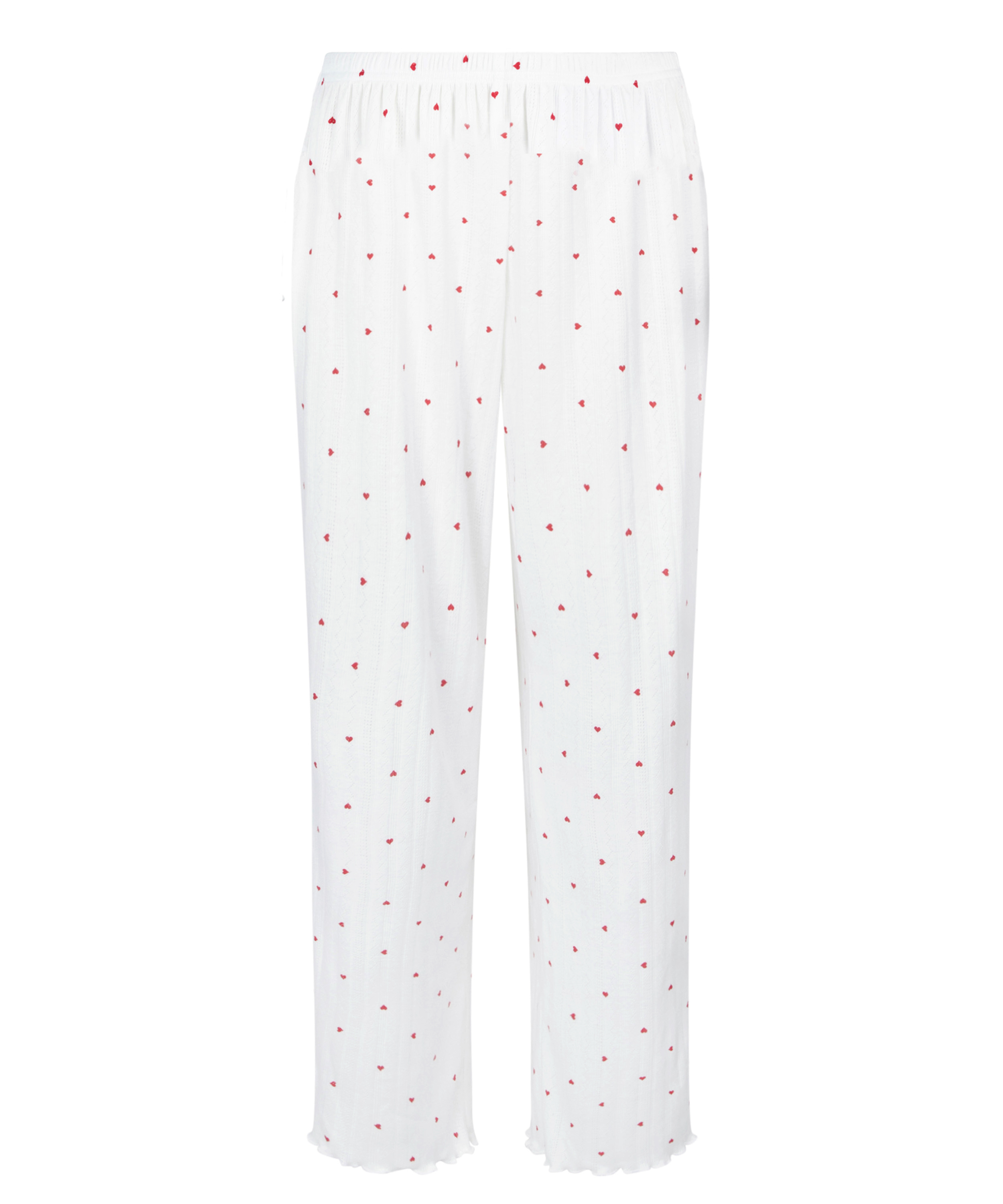Hav det superkomfortabelt i disse dejlige lange pyjamasbukser! Geniale til en hyggelig hjemmeaften. De er fremstillet af det blødeste stof og har et skønt mønster samt søde flæsekanter. Sæt dem sammen med den matchende pyjamastop for at få det perfekte komfortable sæt.