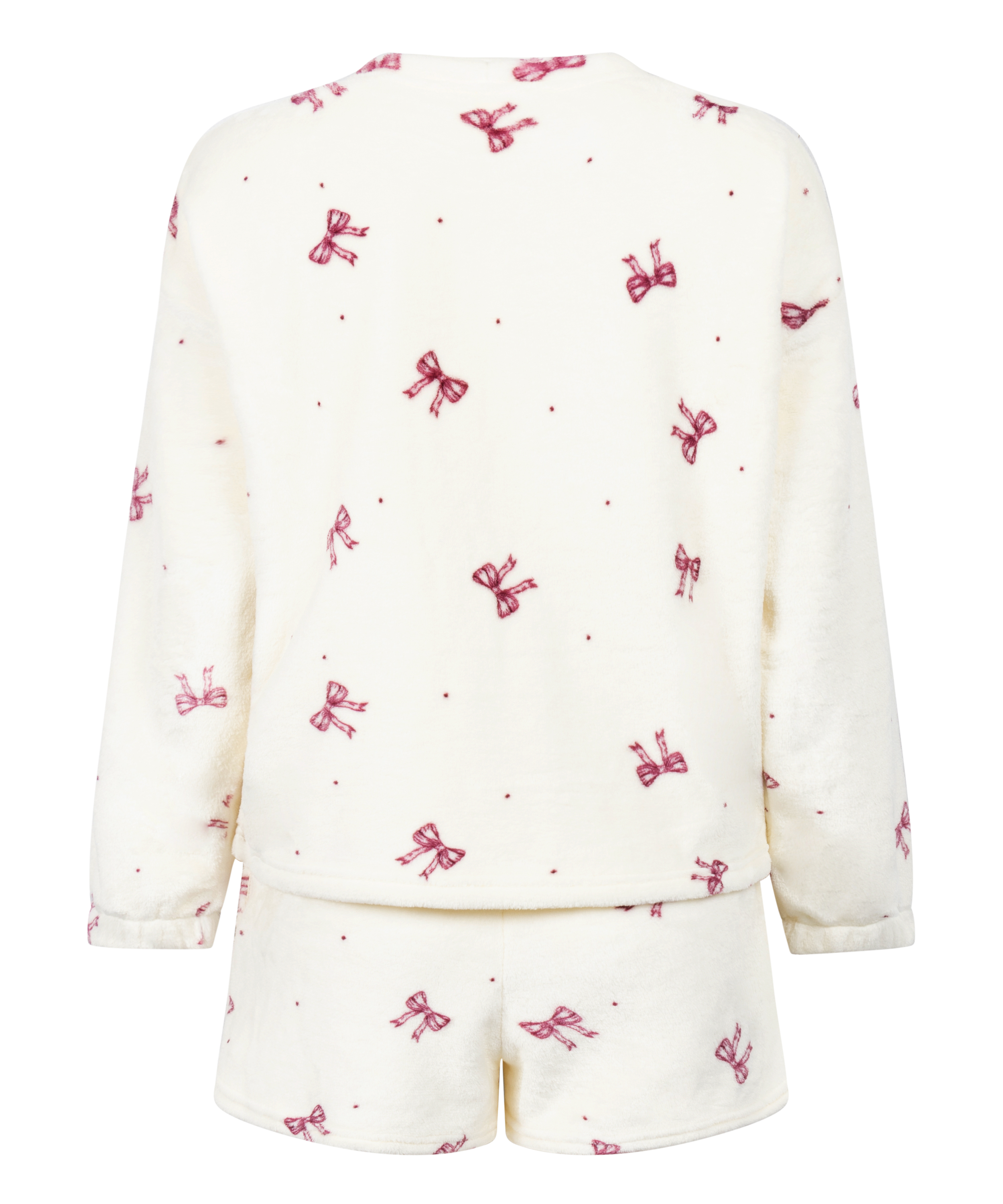 Gør dig klar til at slappe med ultimativ komfort med denne flannelfleece-pyjamas, der består af en langærmet trøje og matchende shorts. Pyjamassen er lavet af ultrablød, plysagtig fleece og er designet til at holde dig varm og og godt tilpas, uden at du bliver overophedet. Den afslappede pasform og det blide stræk gør den perfekt til dovne morgener, filmaftener eller til bare at slappe af med stil.