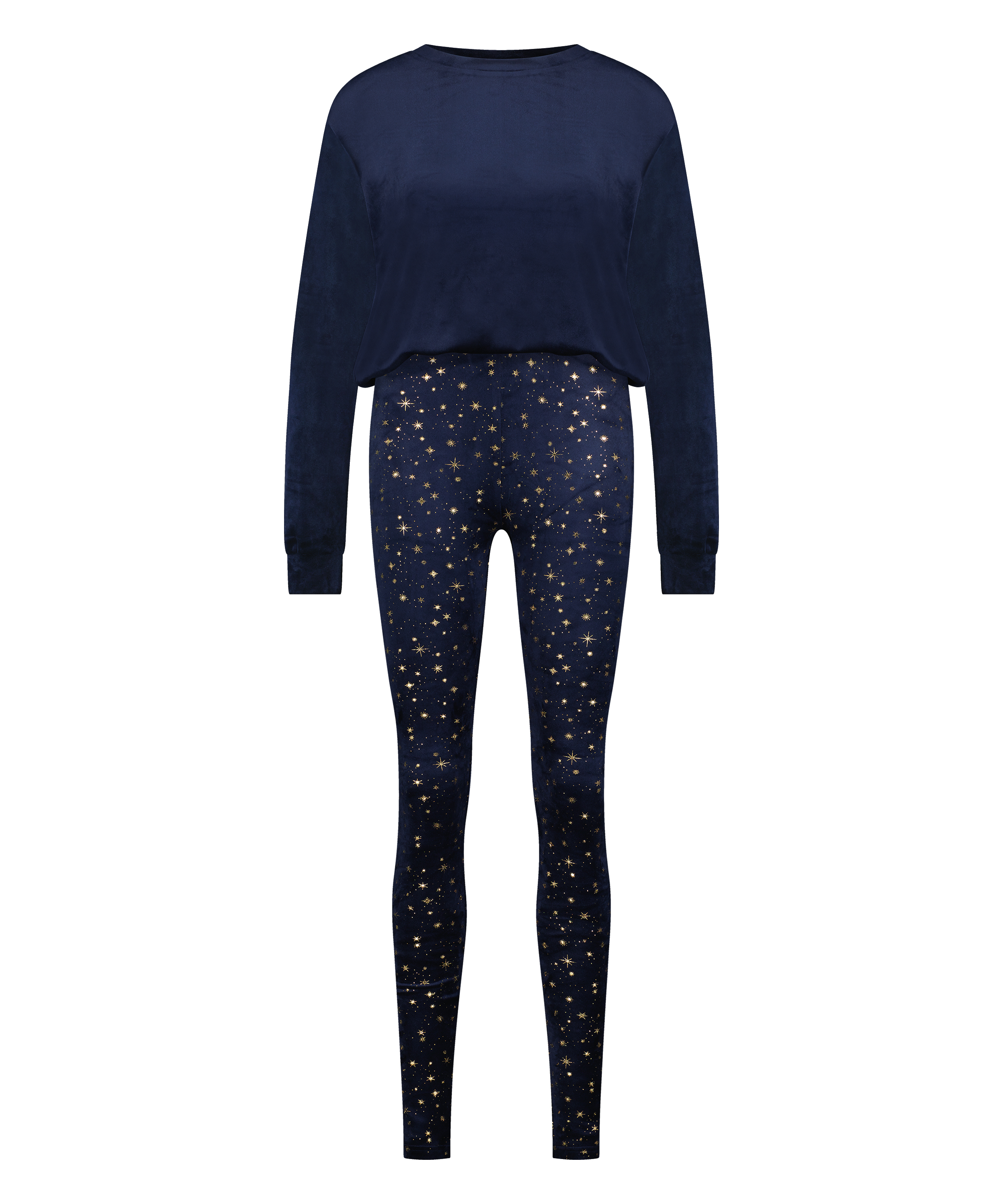 En dejlig pyjamas med en langærmet top og lange bukser til en god nats søvn. Bukserne har et flot print. Få et dejligt par matchende hjemmesko eller sokker.
