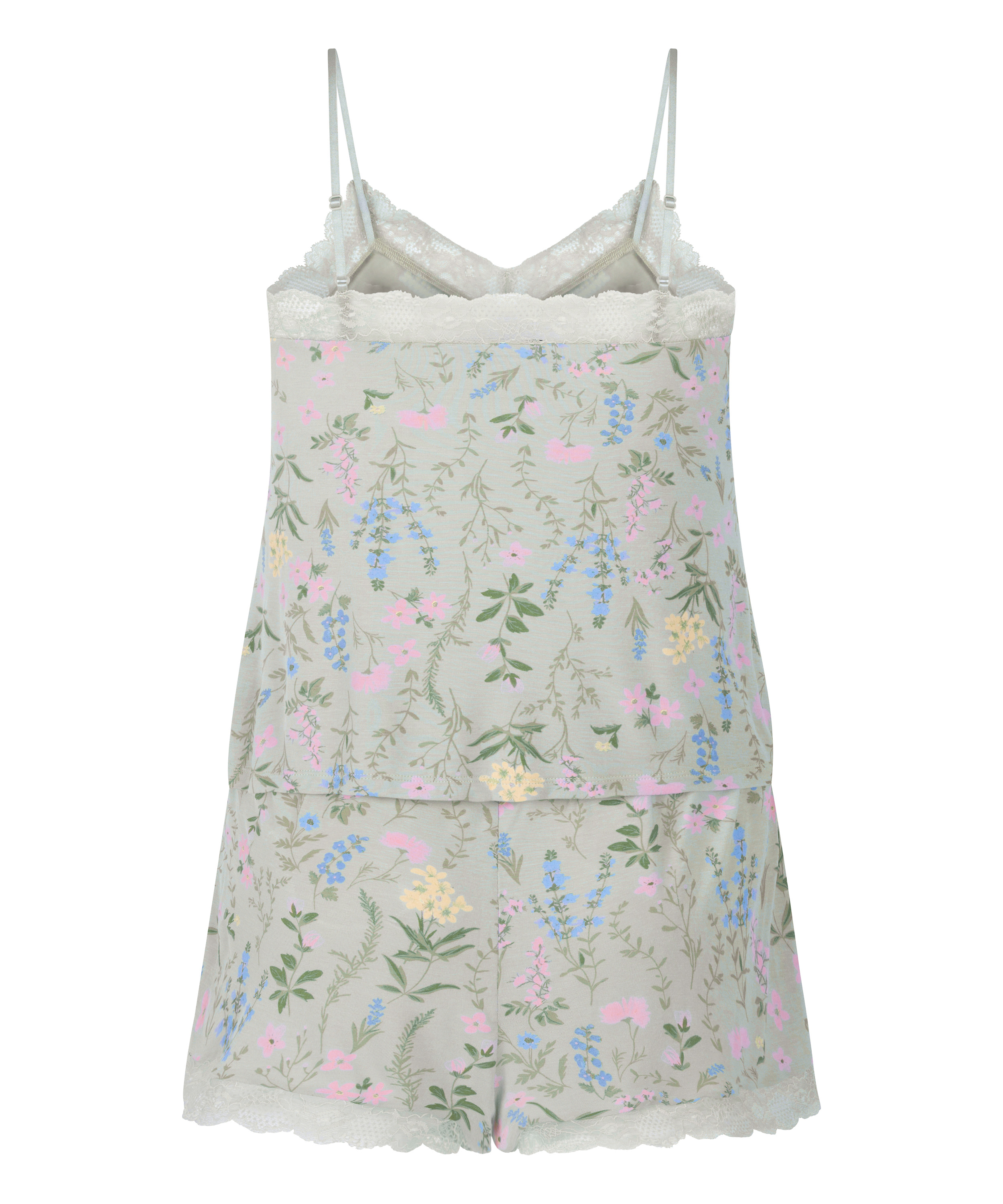 Du kommer til at sove godt i dette behagelige pyjamassæt! Det er forsynet med søde blondedetaljer. Kombiner med en lækker kimono eller badekåbe og få et super behageligt outfit!