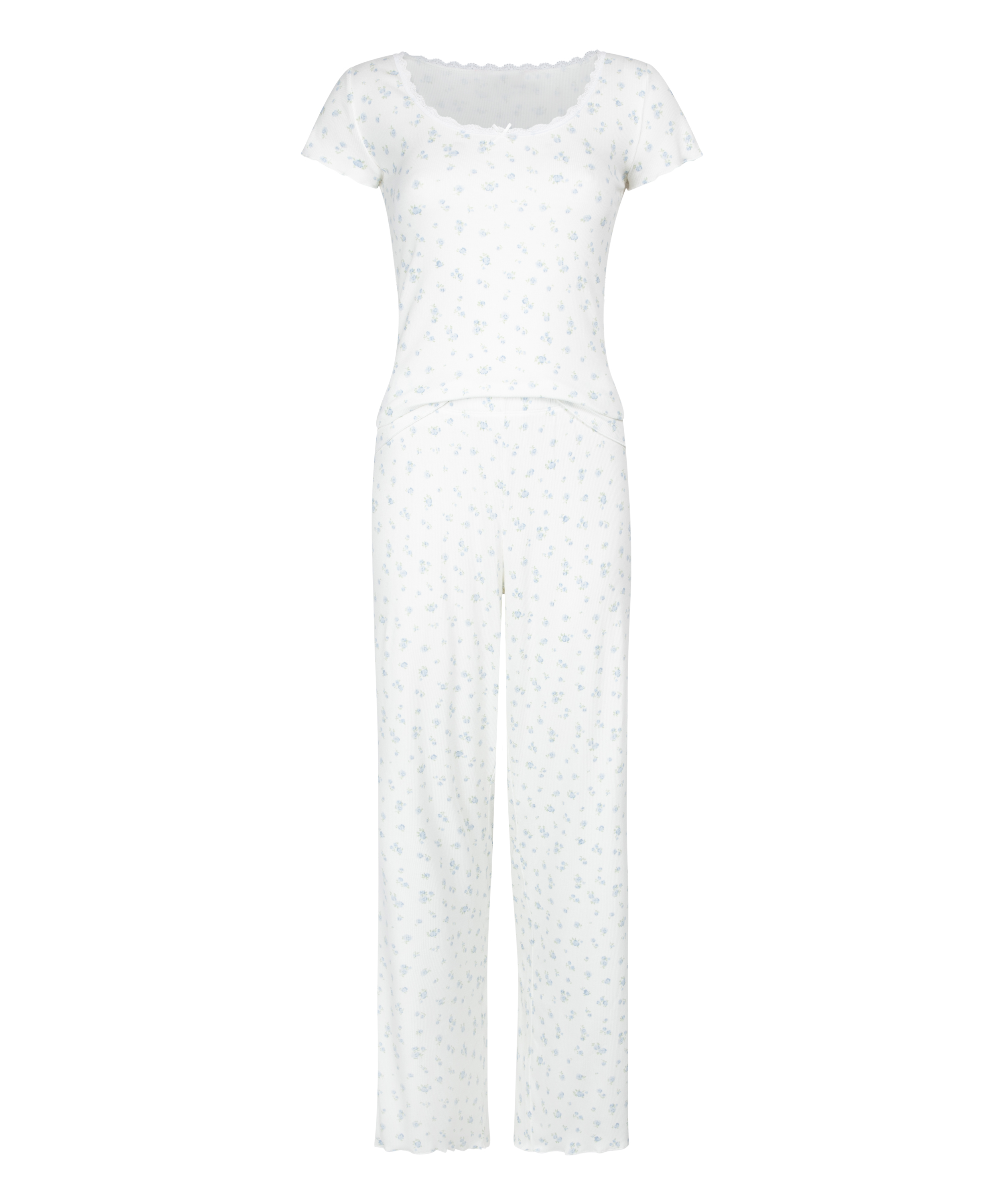 Vær afslappet, men stilfuld med vores pyjamassæt, som er en perfekt blanding af komfort og charme. Det er lavet af et blødt ribmateriale, hvilket gør sættet ideelt til at slappe af eller sove i. Med sin afslappede pasform og lette fornemmelse er dette pyjamas-sæt et must-have for alle, der elsker at kombinere stil og komfort i deres fritid.