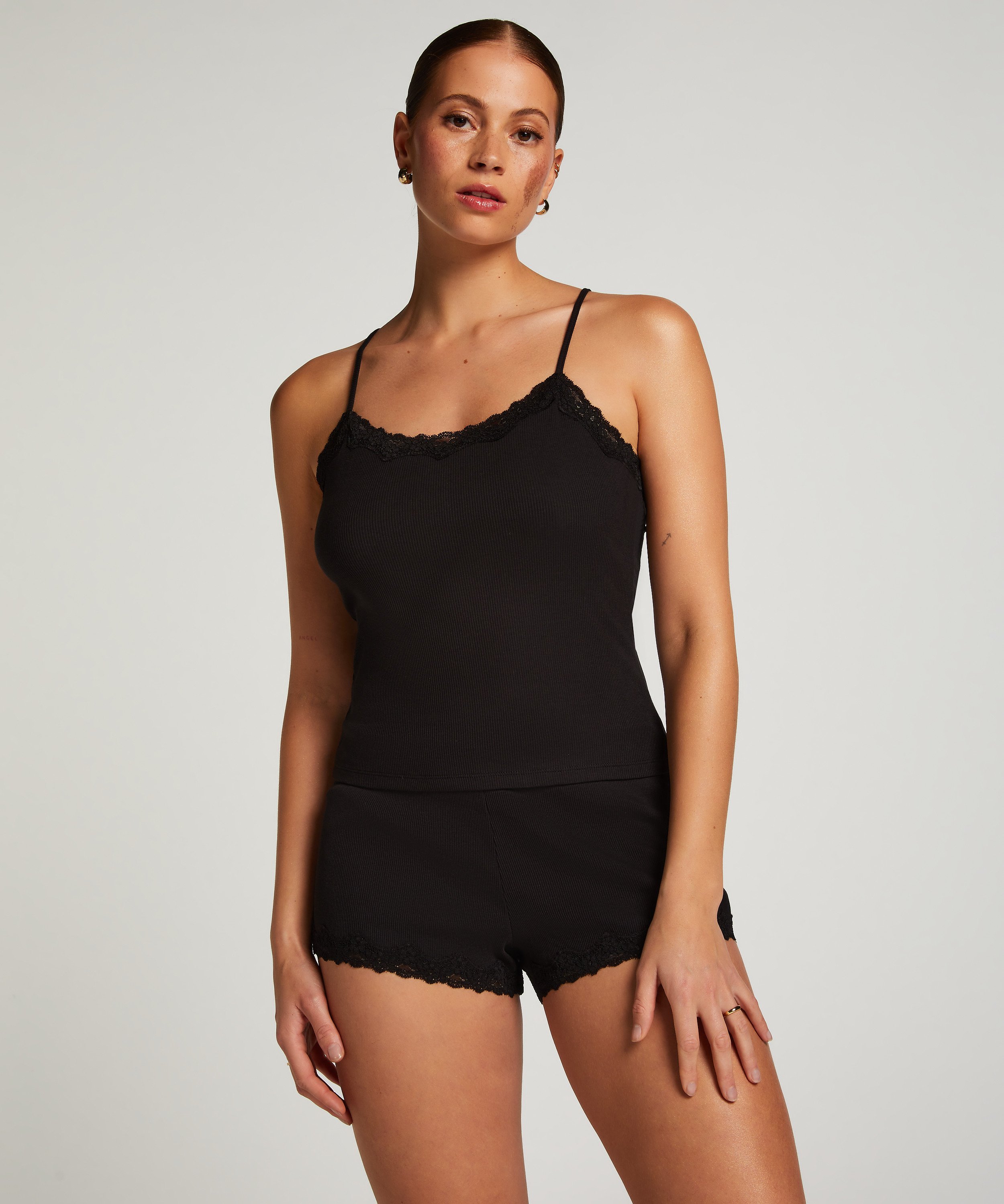 Du kommer til at sove godt i dette behagelige pyjamassæt! Det er forsynet med søde blondedetaljer. Kombiner med en lækker kimono eller badekåbe og få et super behageligt outfit!