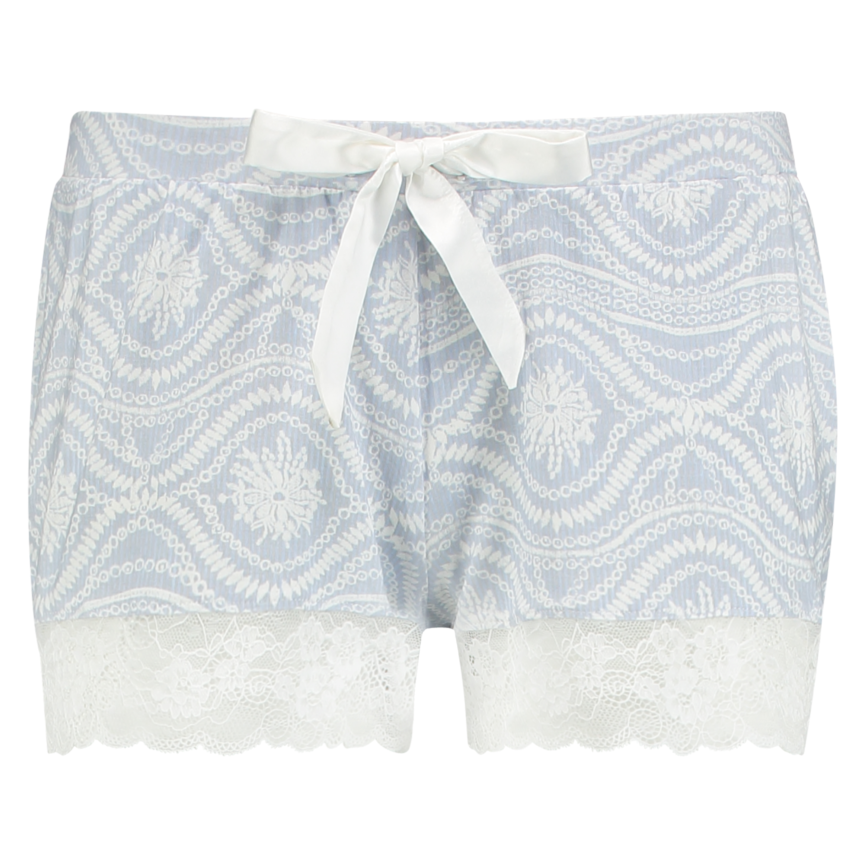Skønne som pyjamasshorts! De søde shorts i et blødt og fleksibelt materiale har behagelig bærekomfort. Shortsene har flot blondekant forneden og en satinsløjfe foran.