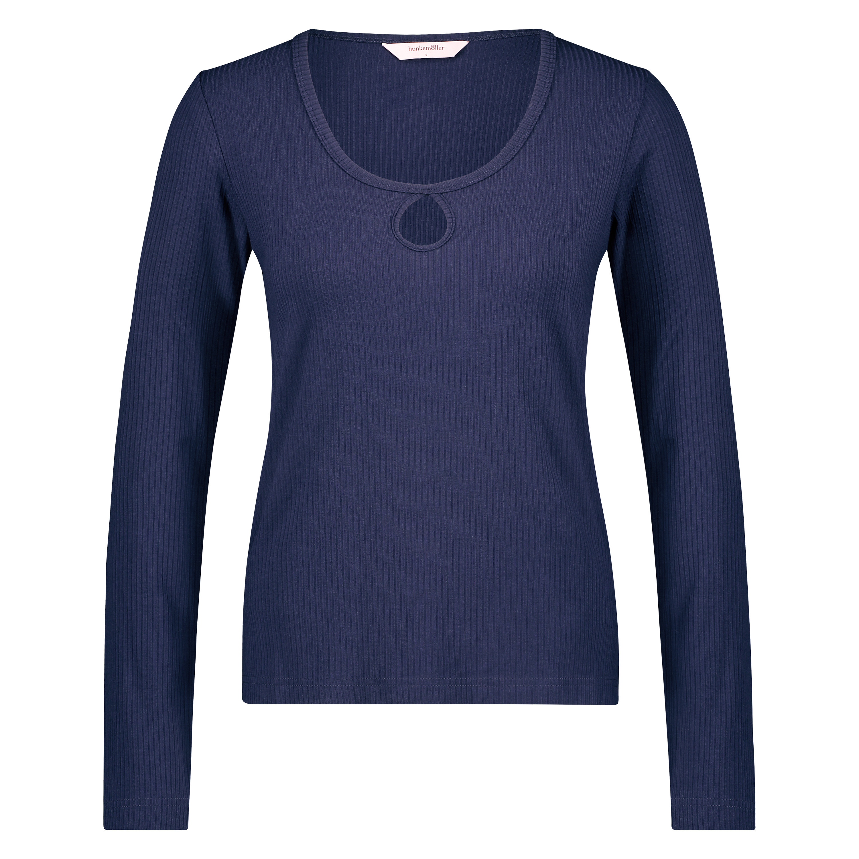 Denne pyjamastop er komfortabel, perfekt til brug derhjemme! Toppen har et rib-motiv og er forsynet med et keyhole cut-out. Matchet med de rigtige pyjamasbukkser får du et komplet look!