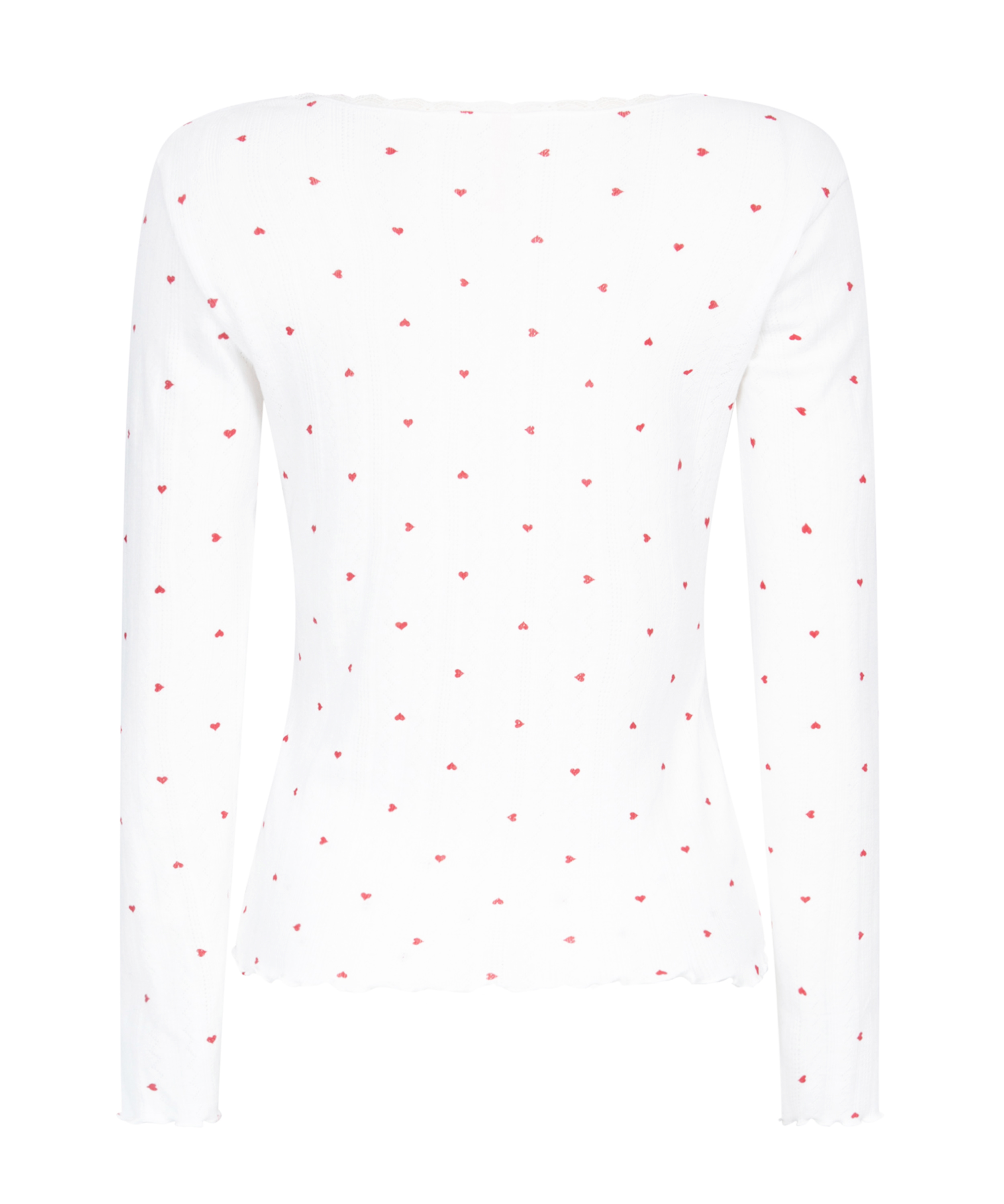 Føl dig godt tilpas i denne dejlige trøje med lange ærmer og rund hals. Den er fremstillet af det blødeste stof og har et skønt mønster samt søde flæsekanter. Sæt den sammen med de matchende bukser for at få det perfekte komfortable sæt.