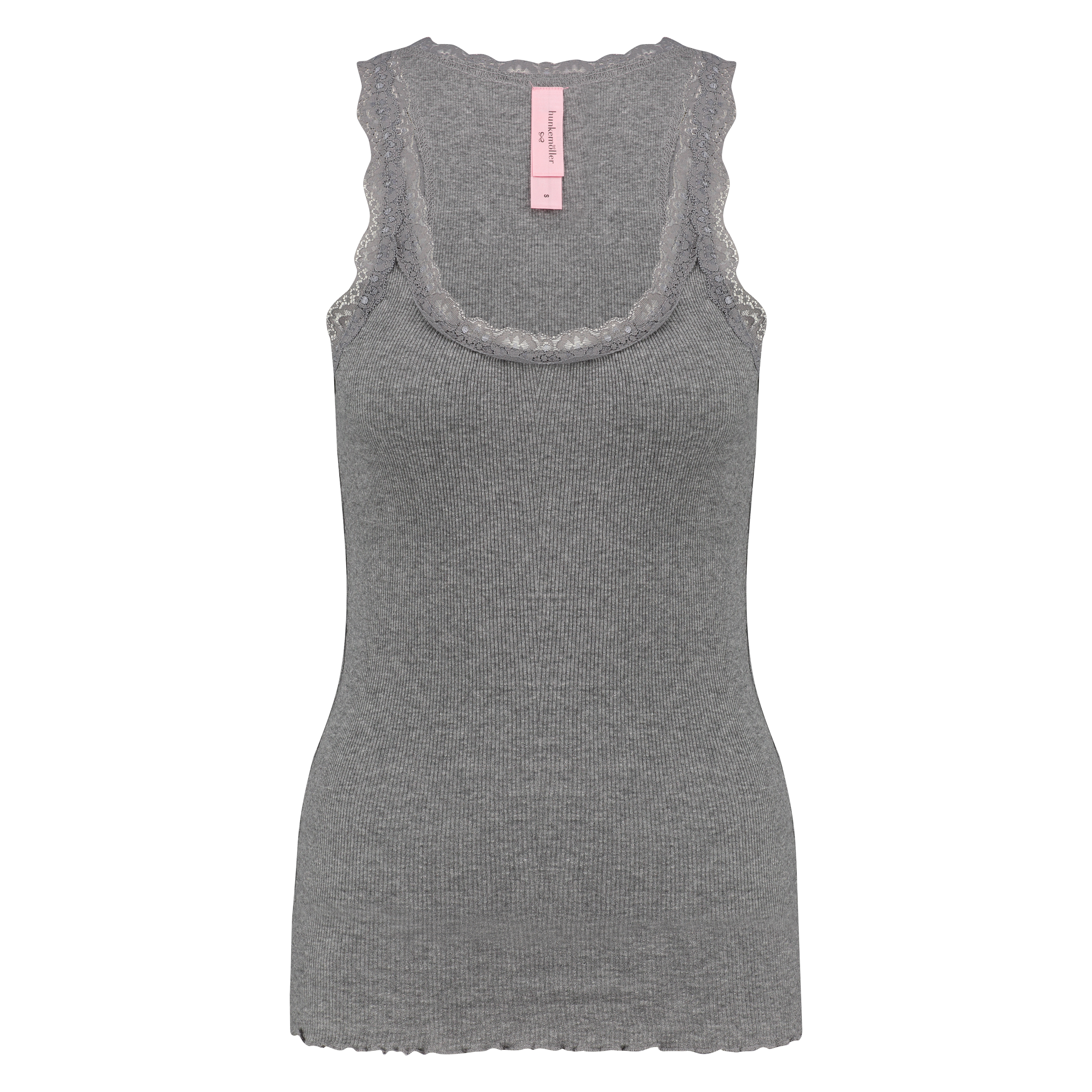 Rib Cami Lace top - Grå