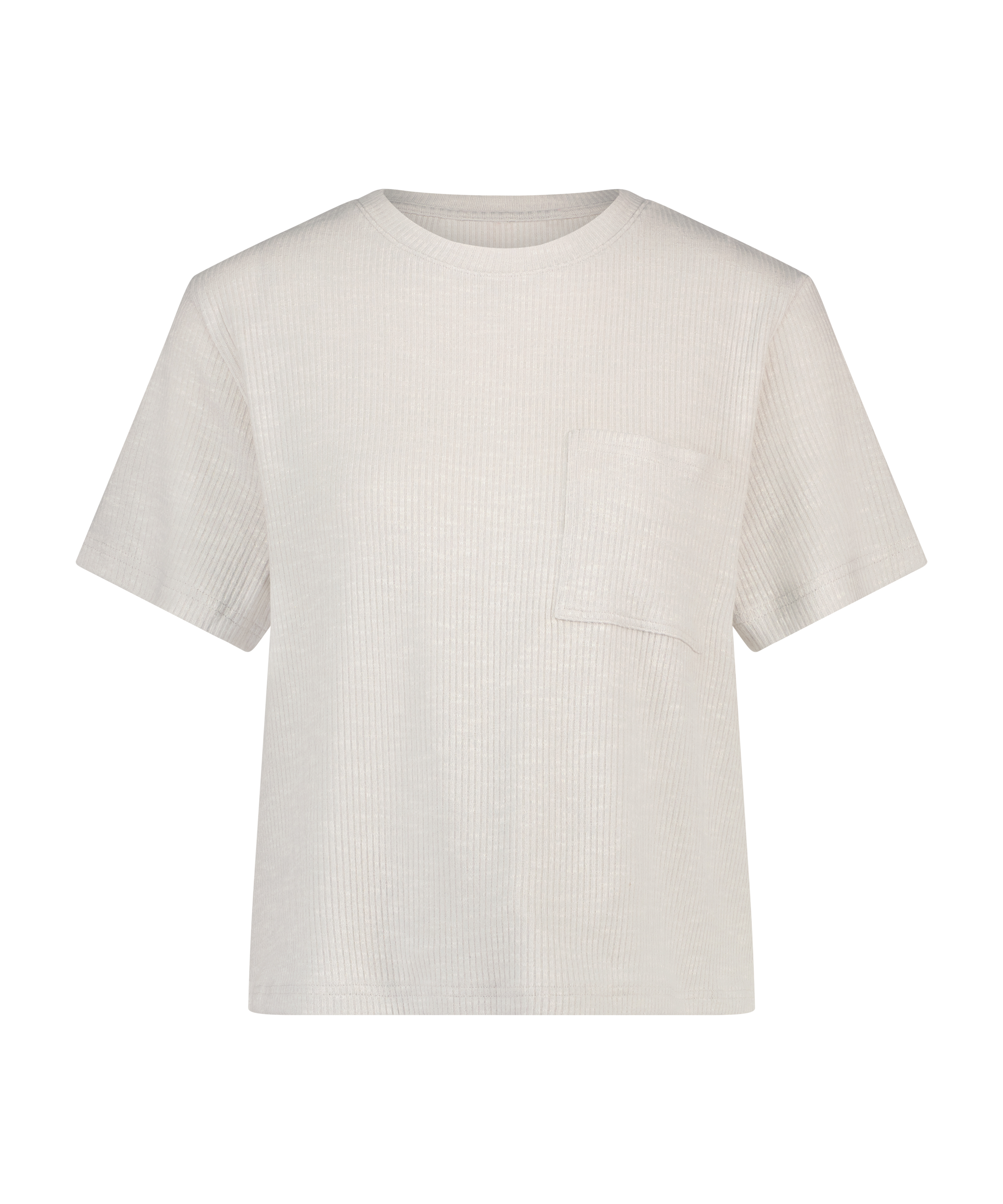 Denne kortærmede pyjamastop er fantastisk! Den er lavet af ribstof og er meget strækbar. Kombiner den med matchende dele.
