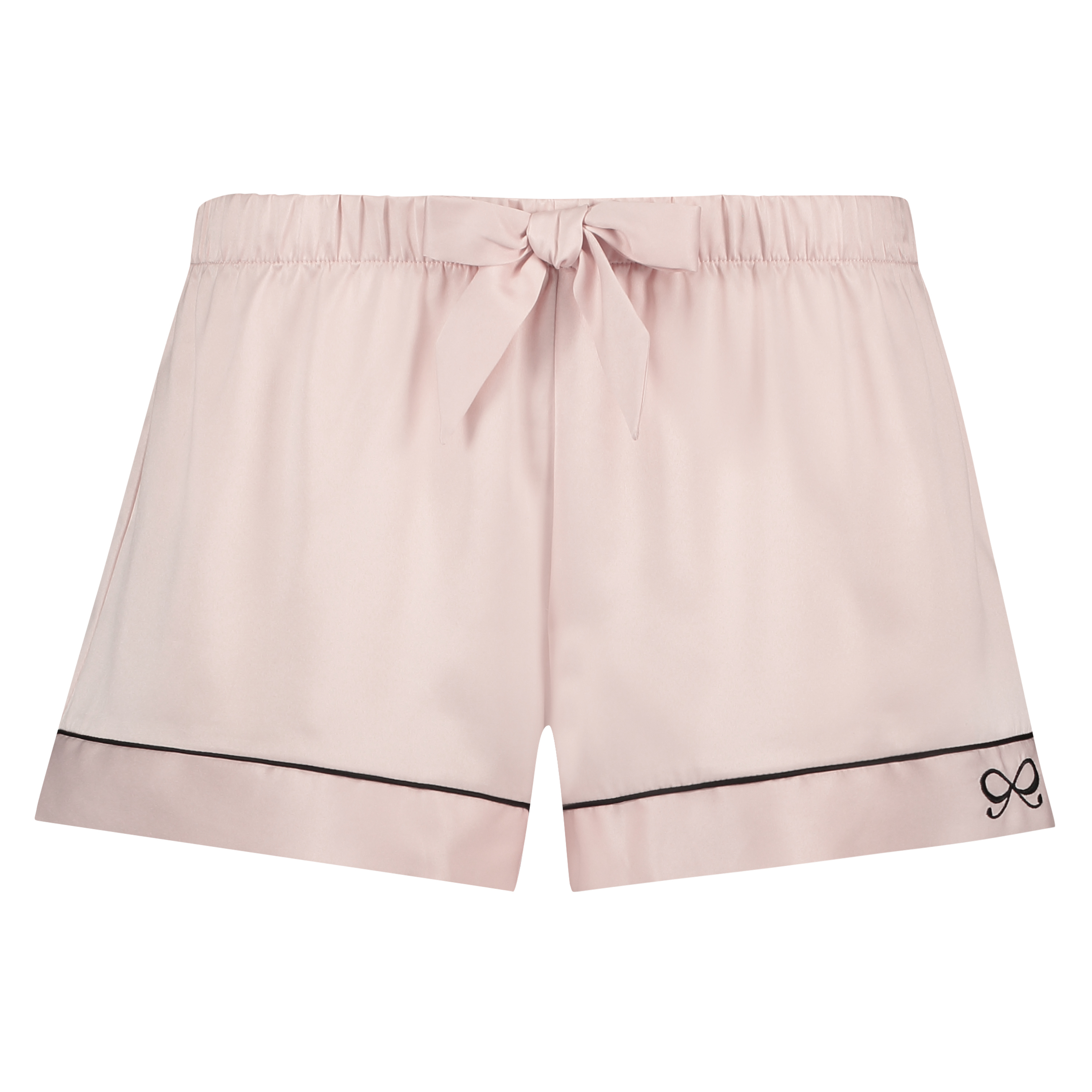 Disse pyjamasshorts ser ud og føles som satin. Disse pyjamasshorts har en satinsløjfe foran.