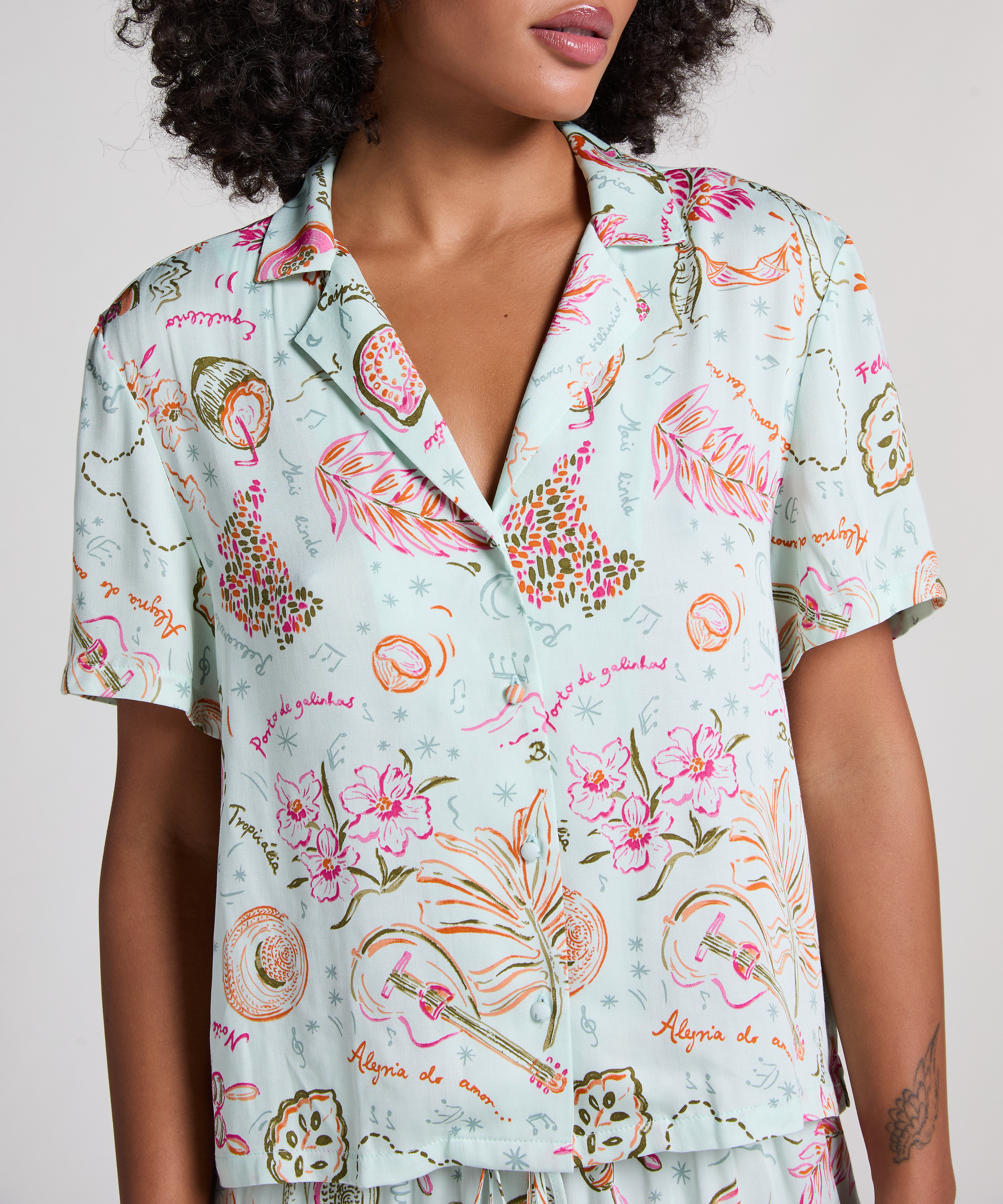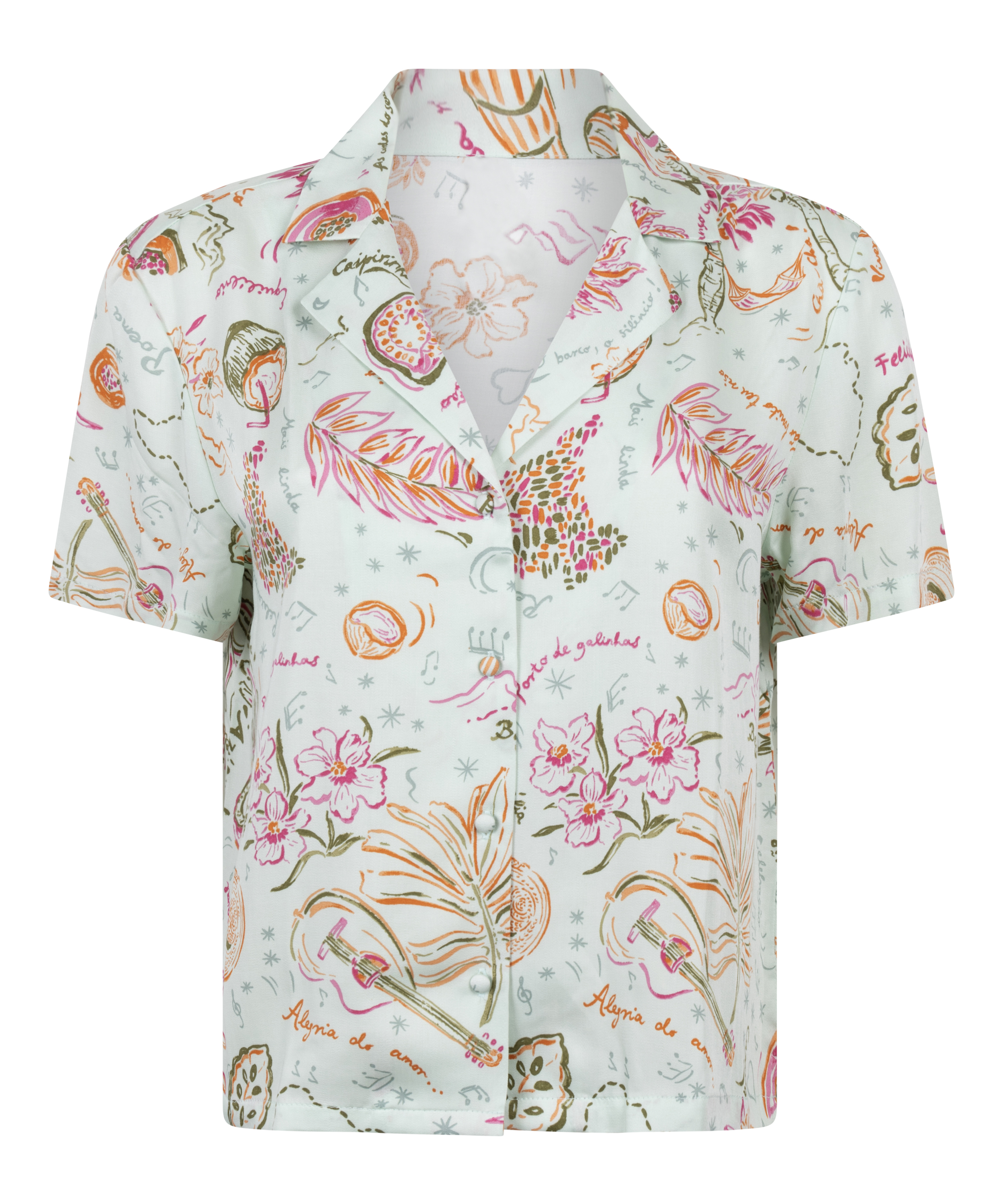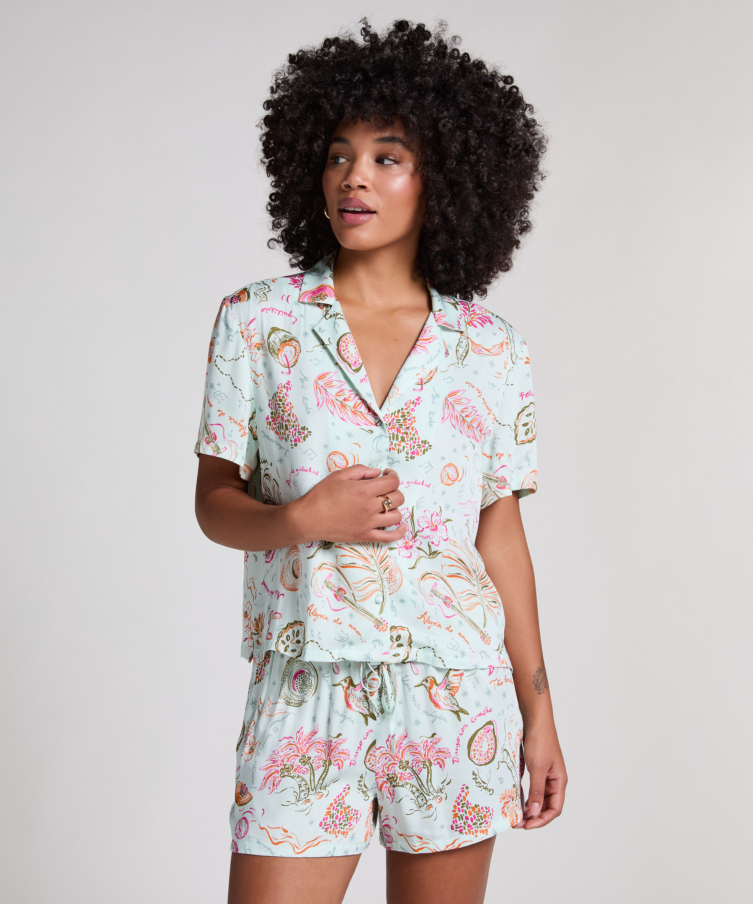 Denne natskjorte i blødt letvægtsstof giver ultimativ komfort til en afslappende nat. Den elegante krave med et foldet design og V-udskæring tilføjer et strejf af sofistikeret stil. Stofbeklædte knapper fuldender det raffinerede look for en fredelig, men stilfuld søvnoplevelse.