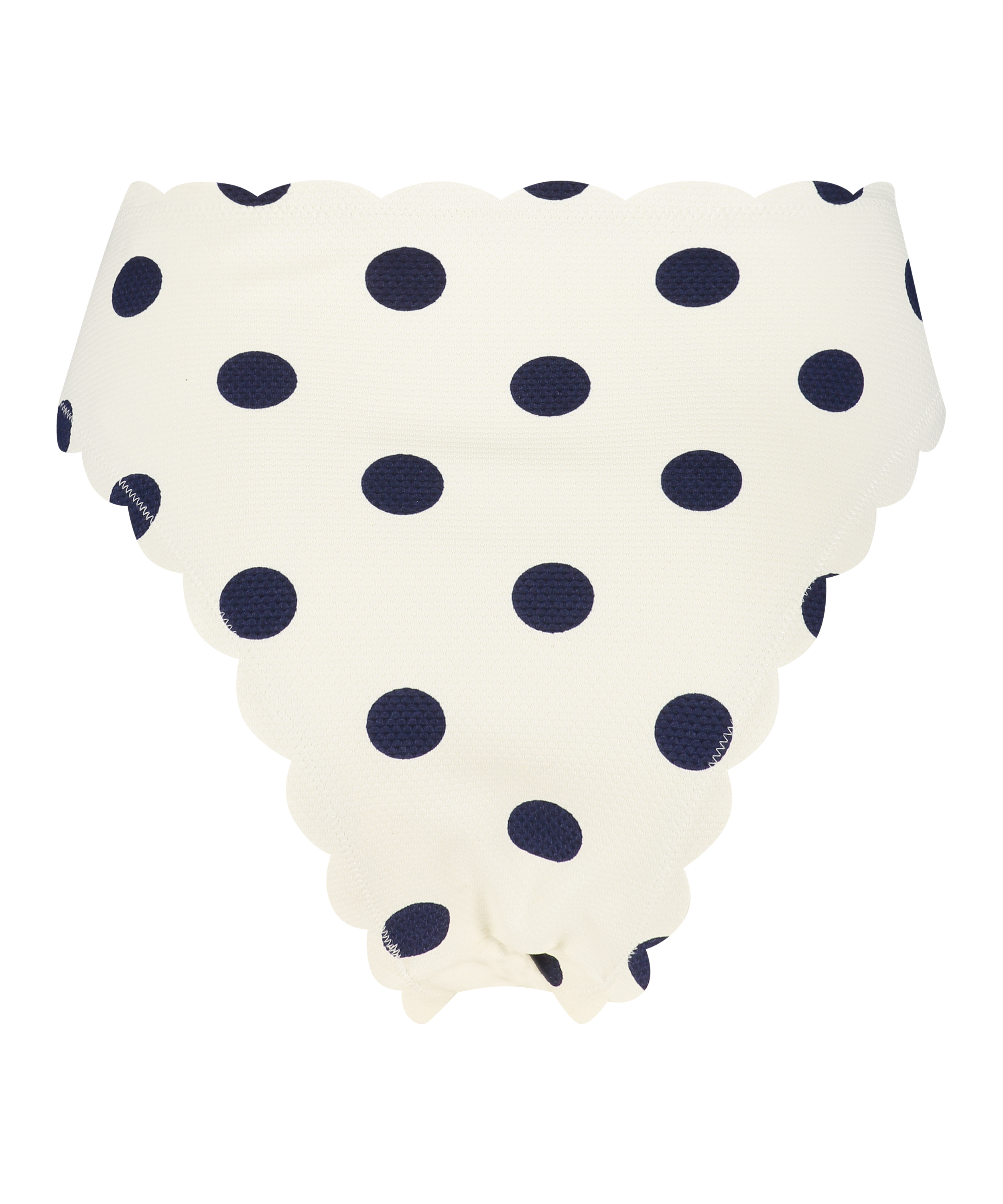 Disse bikinitrusser med høje ben kommer til at sidde fuldstændig fantastisk på dig! De har et smukt prikket polkamønstret stof. De sidder lidt højere og har et højt bensnit, hvilket sætter fokus på dine ben. Bikinitrussens rene linjer giver dig en perfekt solbrændt kulør. Sæt disse bikinitrusser sammen med den matchende top, så du har et sæt!