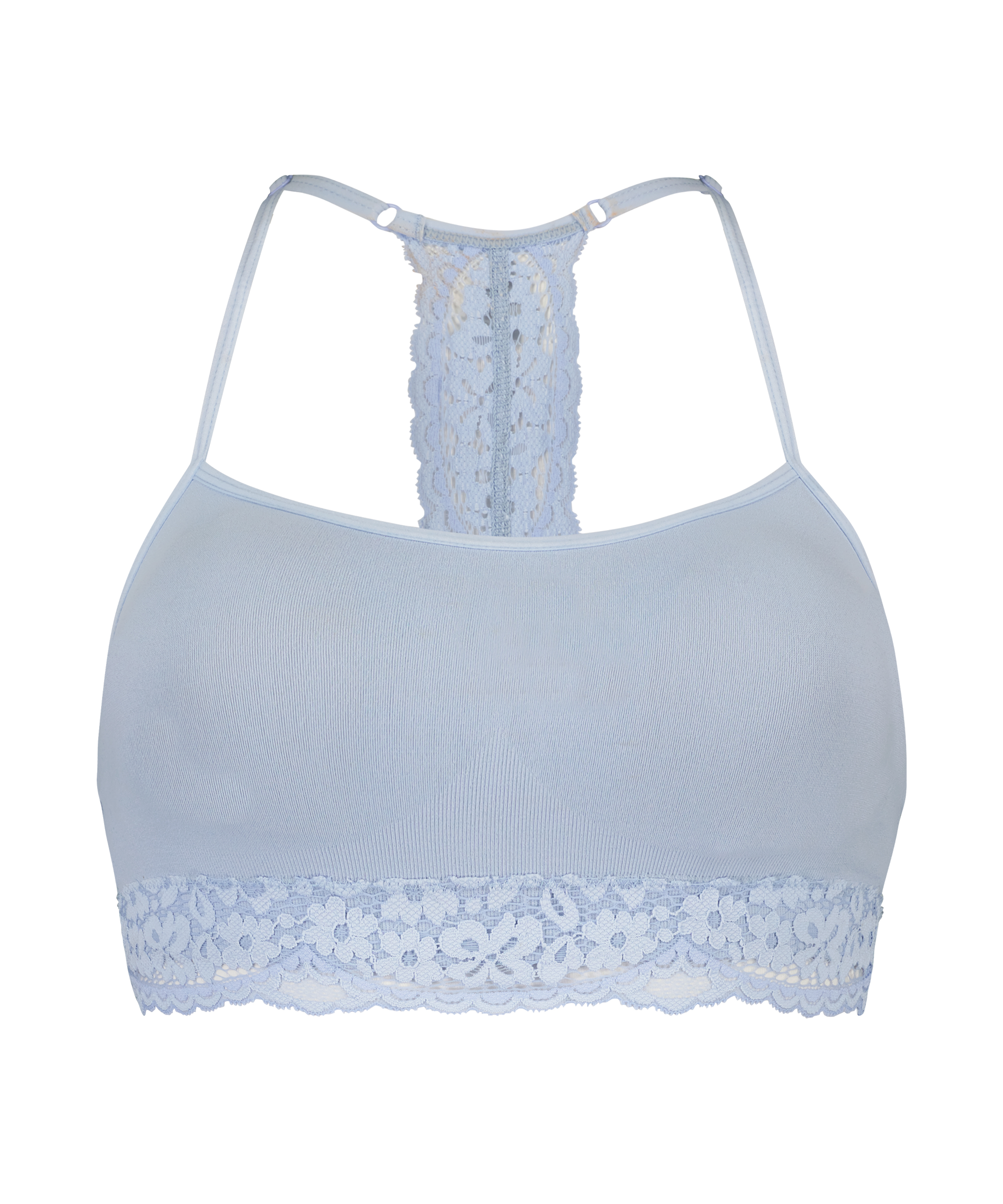 Vi er rigtigt glade for denne sømløse bralette! Braletten har blondedetaljer på ryggen og under skålene, og den er non-wired, hvilket gør den superkomfortabel.