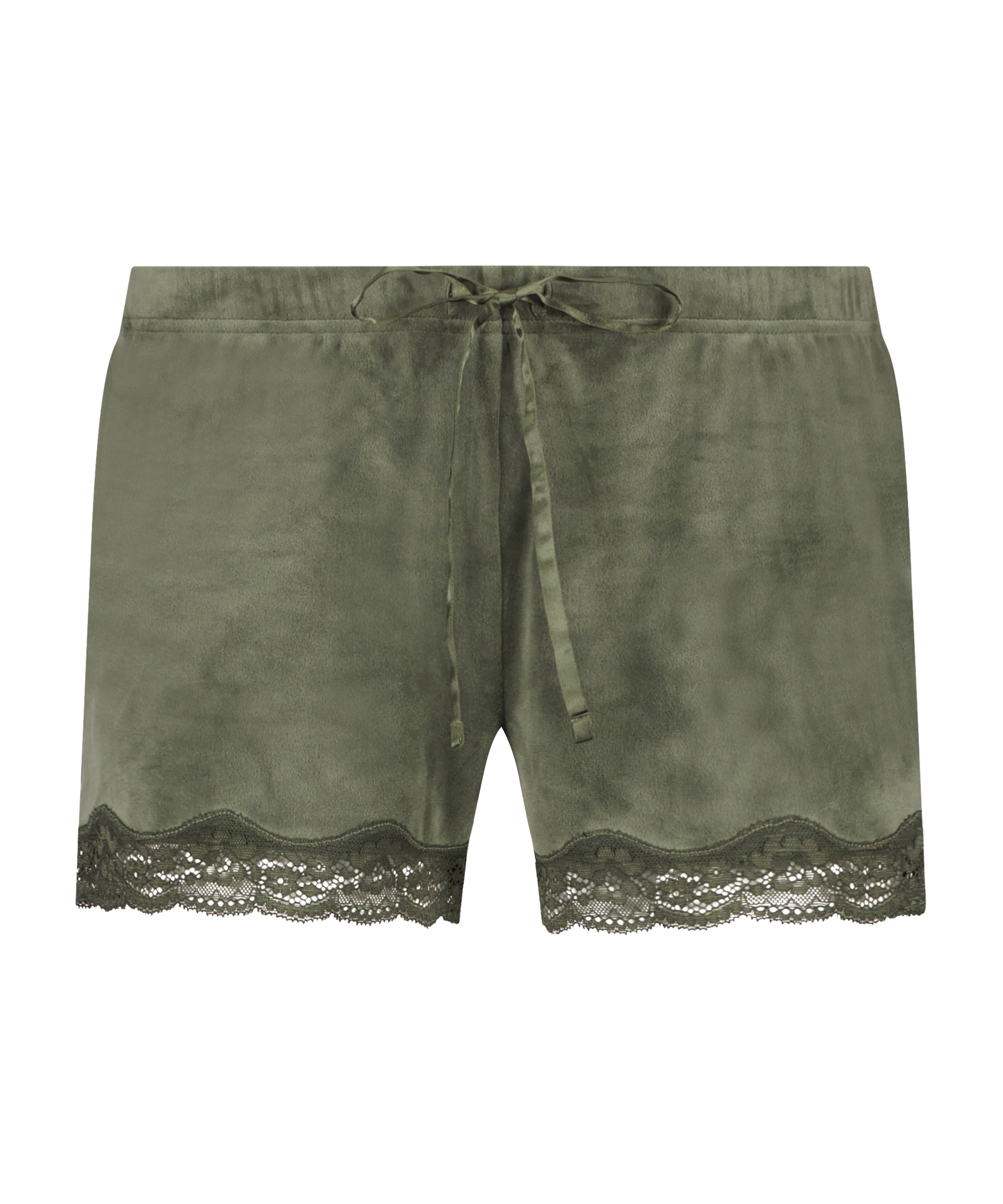Føl dig supersexet og feminin i disse bløde shorts! Shortsene er lavet af et velourstof og forsynet med blonder. Sæt dem sammen med matchende items.