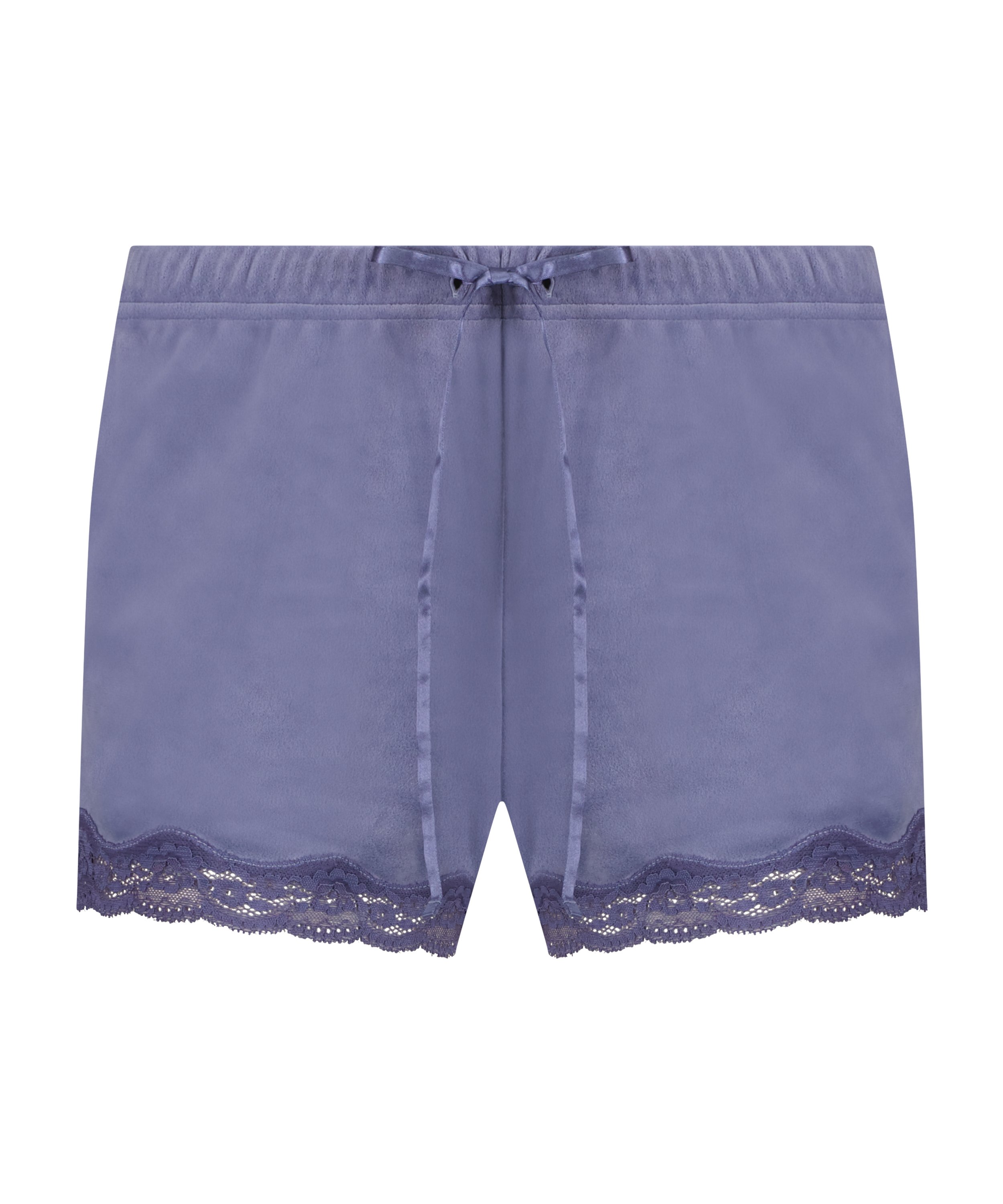 Føl dig supersexet og feminin i disse bløde shorts! Shortsene er lavet af et velourstof og forsynet med blonder. Sæt dem sammen med matchende items.