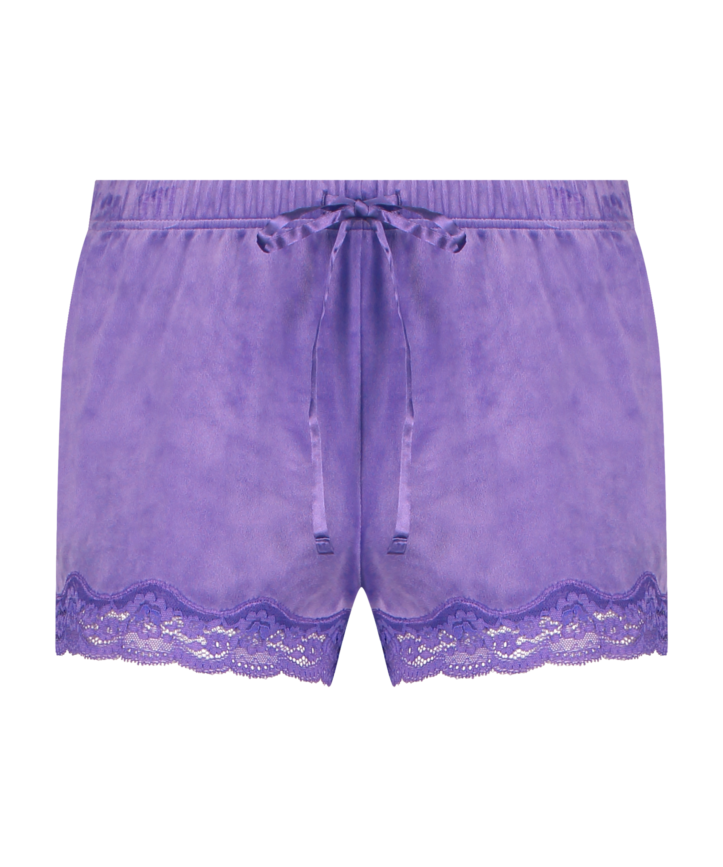 Føl dig supersexet og feminin i disse bløde shorts! Shortsene er lavet af et velourstof og forsynet med blonder. Sæt dem sammen med matchende items.