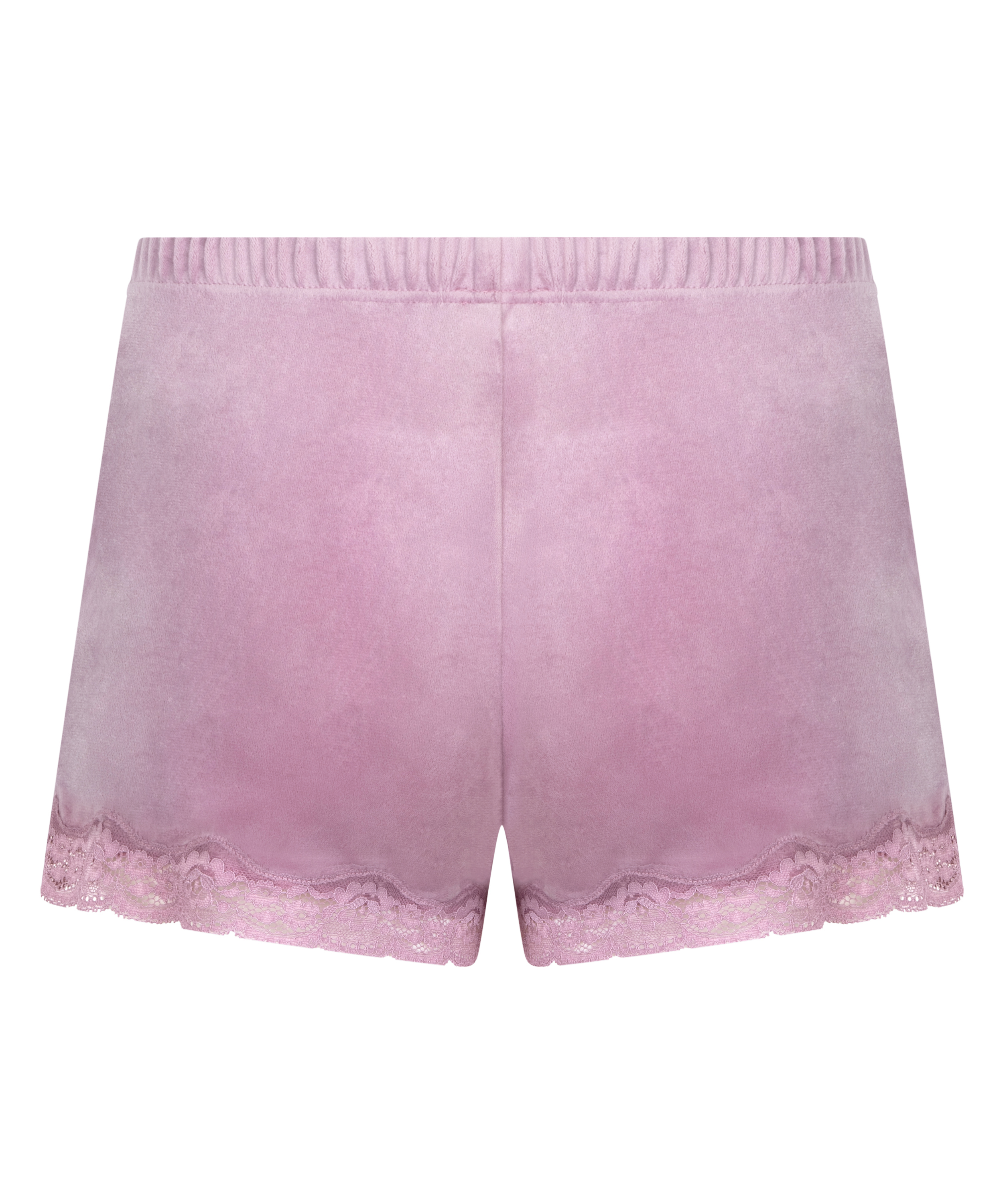Føl dig supersexet og feminin i disse bløde shorts! Shortsene er lavet af et velourstof og forsynet med blonder. Sæt dem sammen med matchende items.