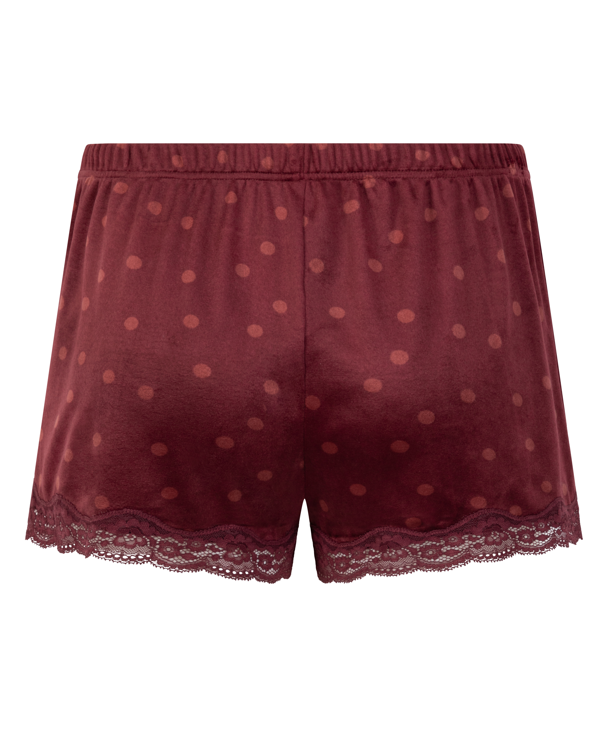 Føl dig supersexet og feminin i disse bløde shorts! Shortsene er lavet af et velourstof og forsynet med blonder. Sæt dem sammen med matchende items.
