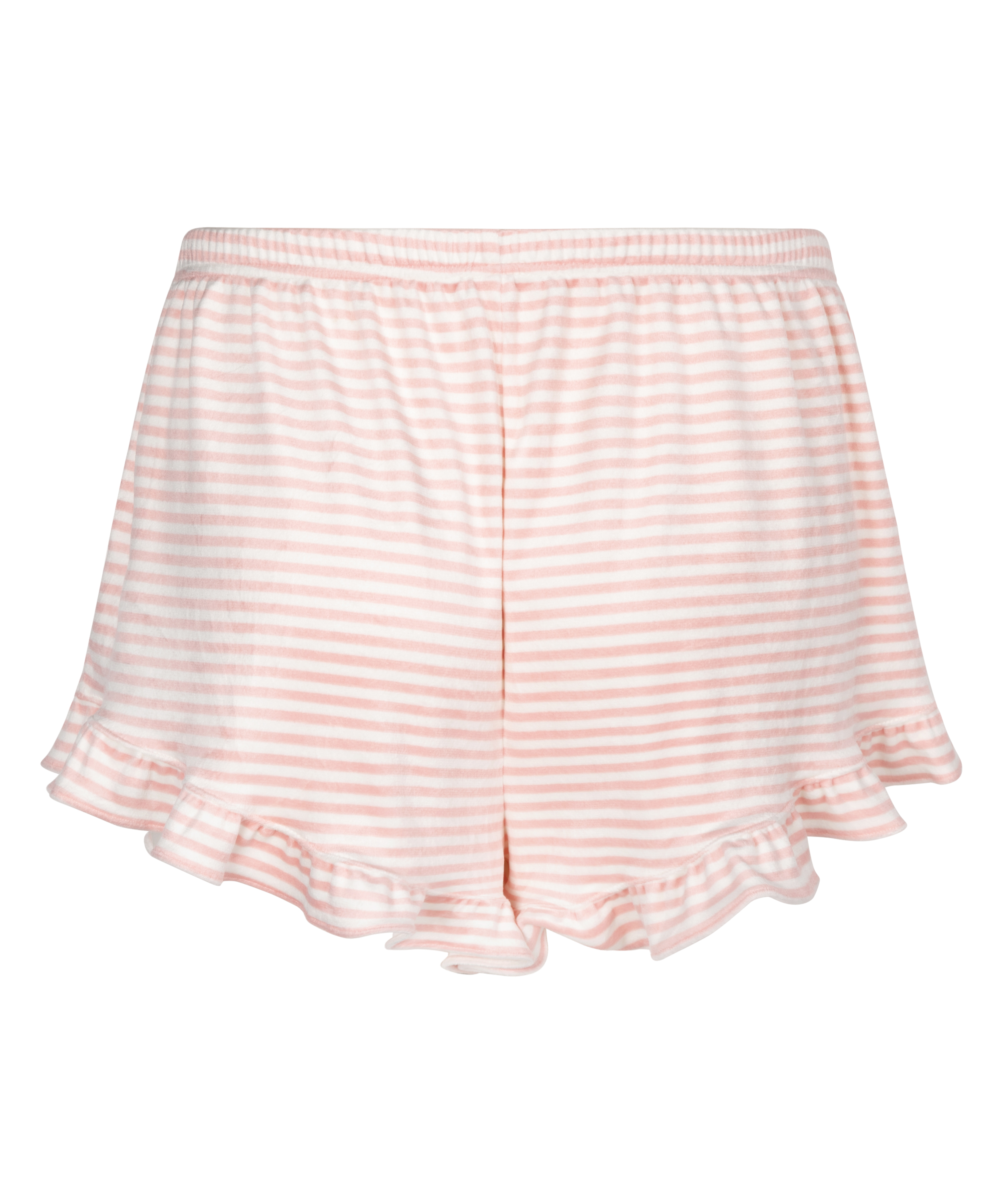 Fløjl er totalt oppe i tiden! Disse shorts er super bløde og så vidunderligt behagelige at have på! De har en skøn flæsedetaljer på kanterne af benåbningerne. Kombiner den med de matchende dele.