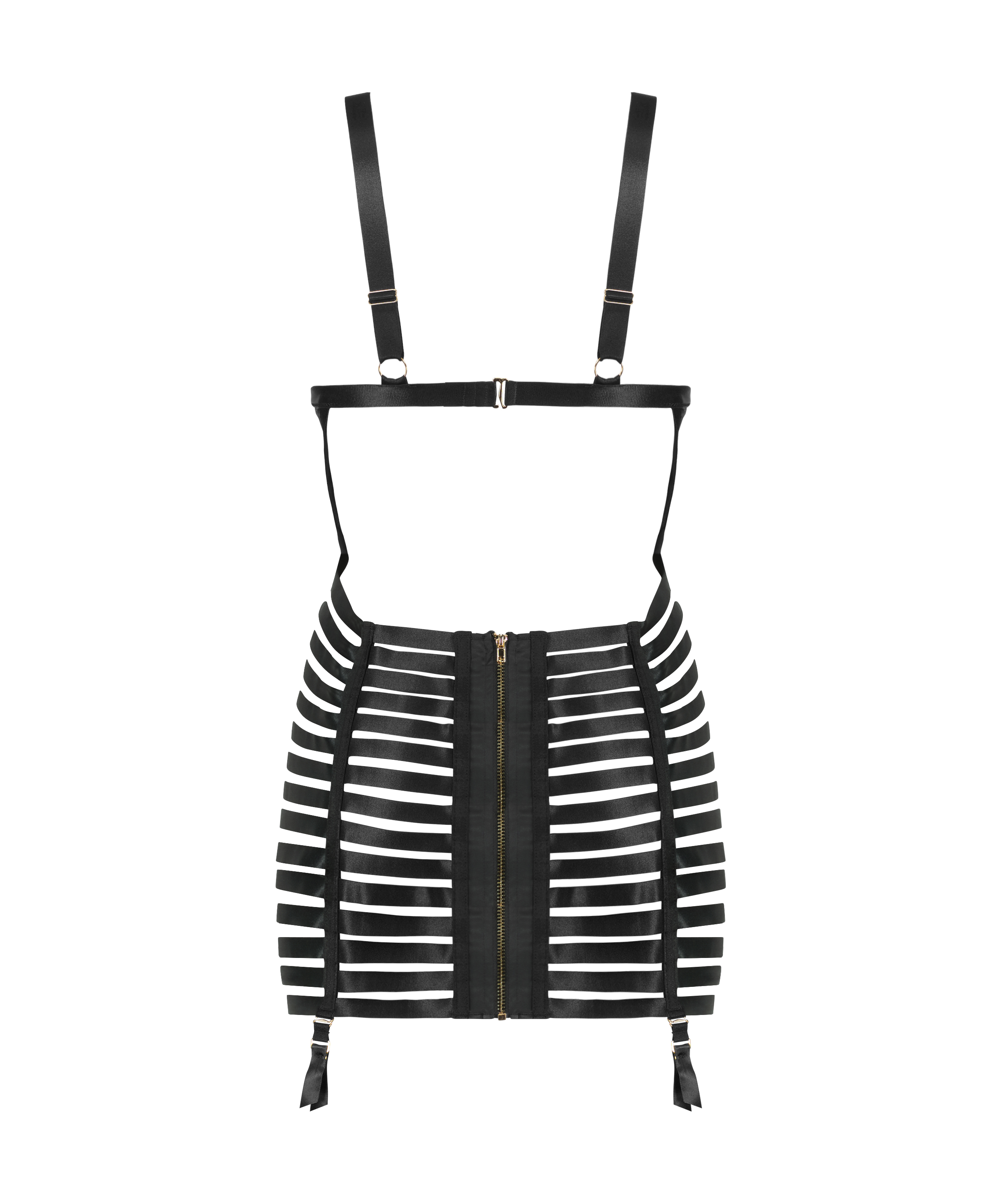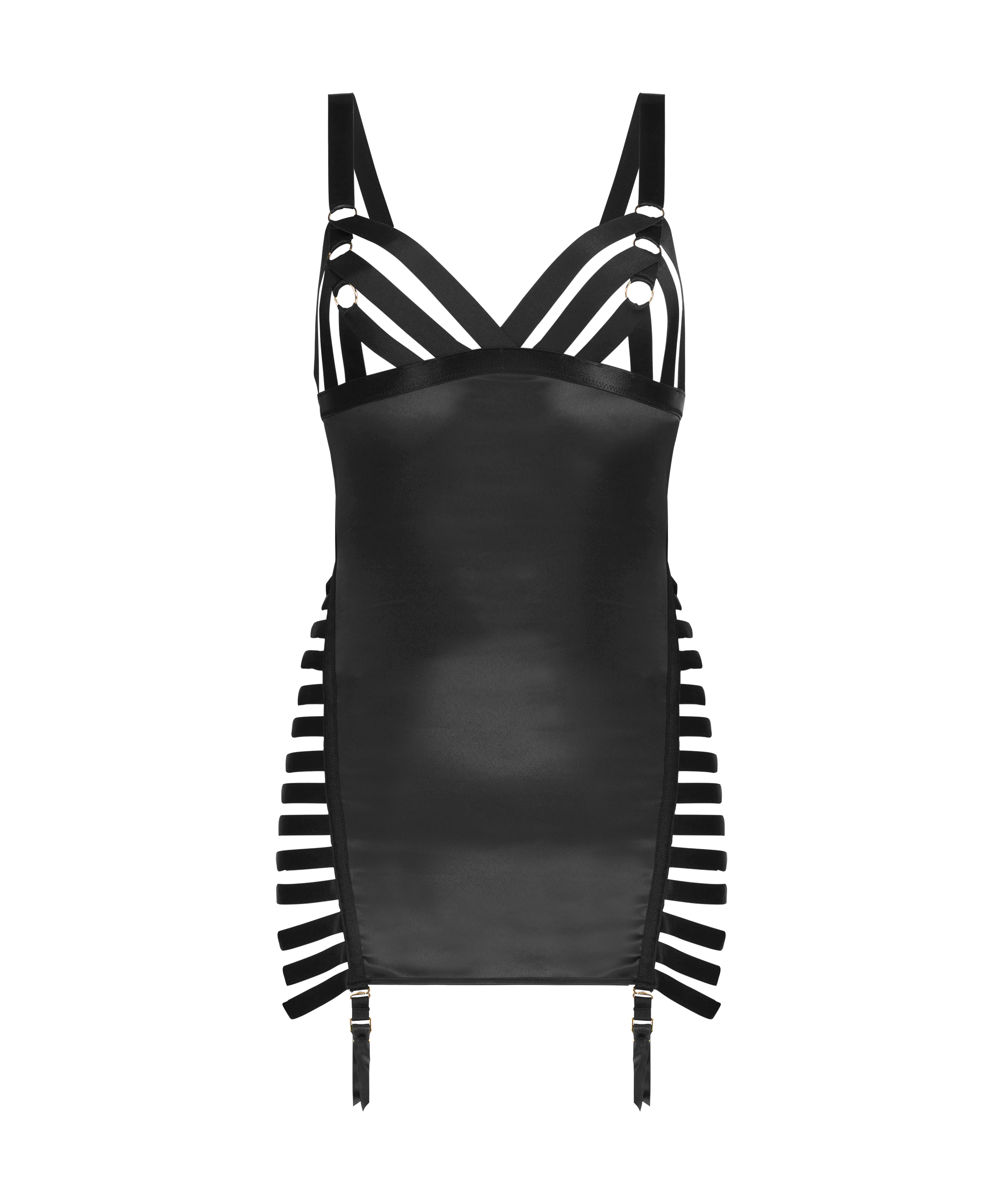 Føl dig super sexet i denne natkjole! Den har stropper, som giver et provokerende look. Kjolen er lavet af satinstof foran og lukkes med lynlås bagpå samt hofteholdere til at sætte dine yndlingsstrømper fast med. En del af vores Private Collection.