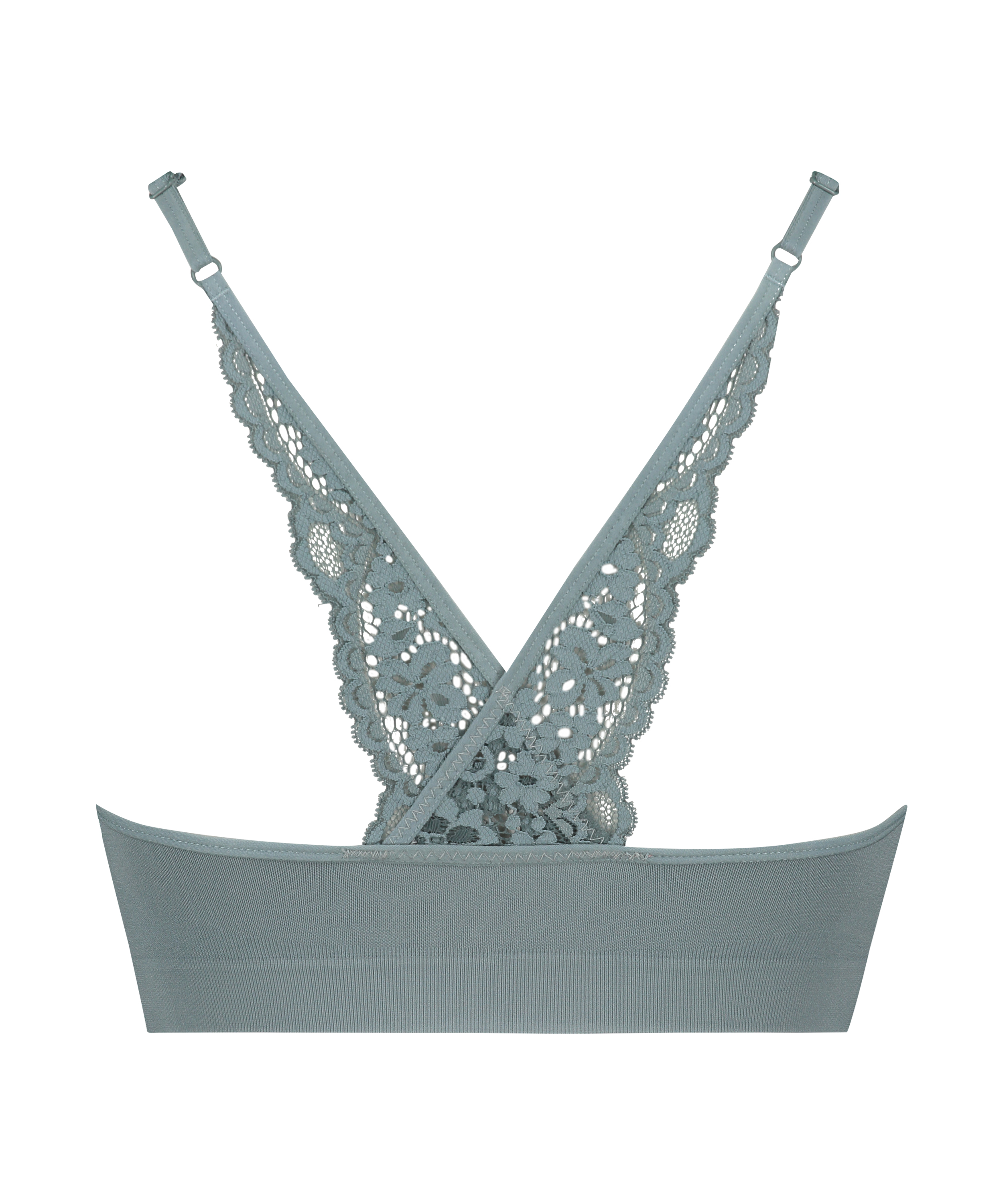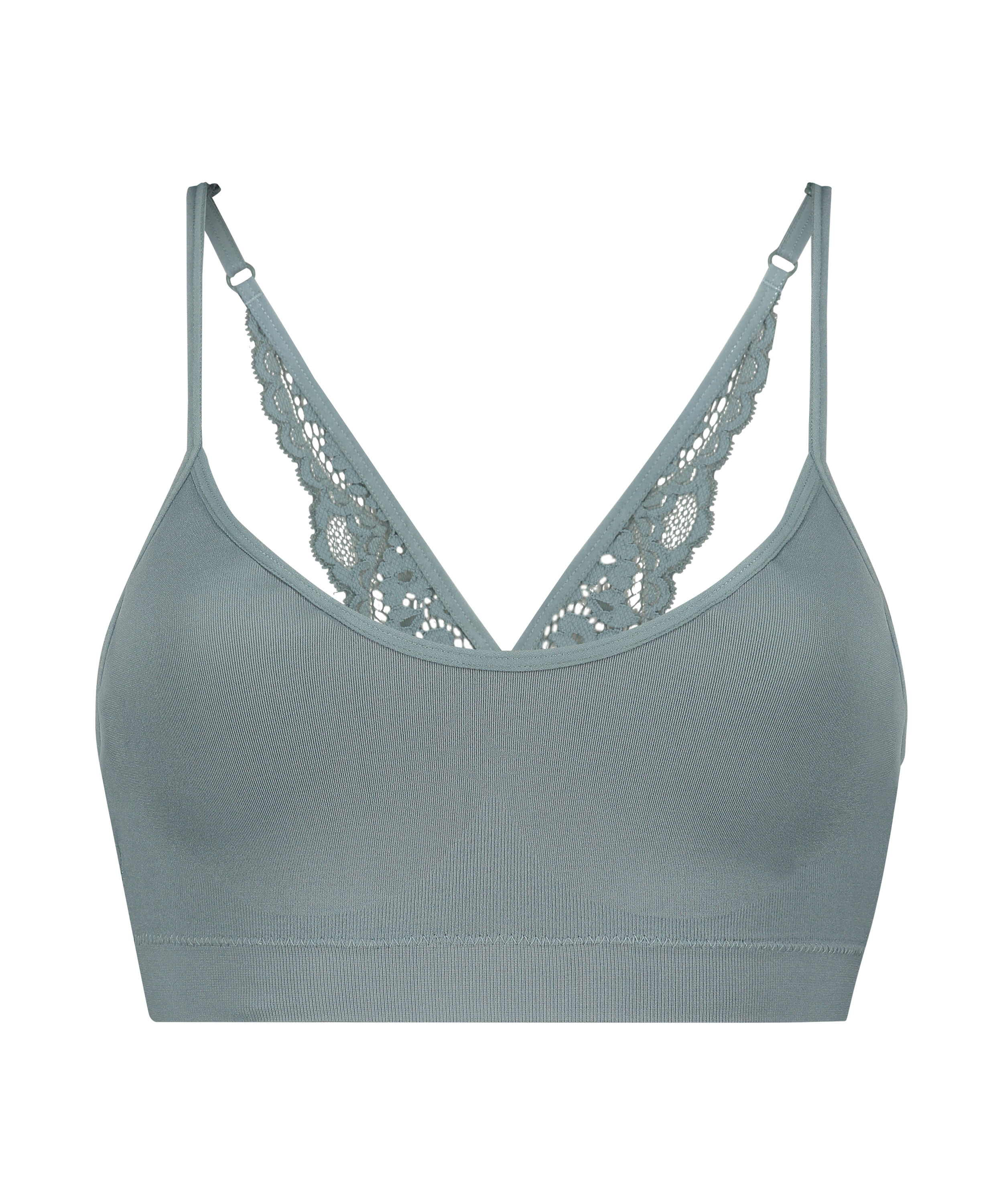 Denne sømløse bralette er mega behagelig. Braletten har blonder på ryggen, hvilket gør den super sød, og spaghettistropperne er justerbare. Matchet med en passende trusse har du et komplet sæt!