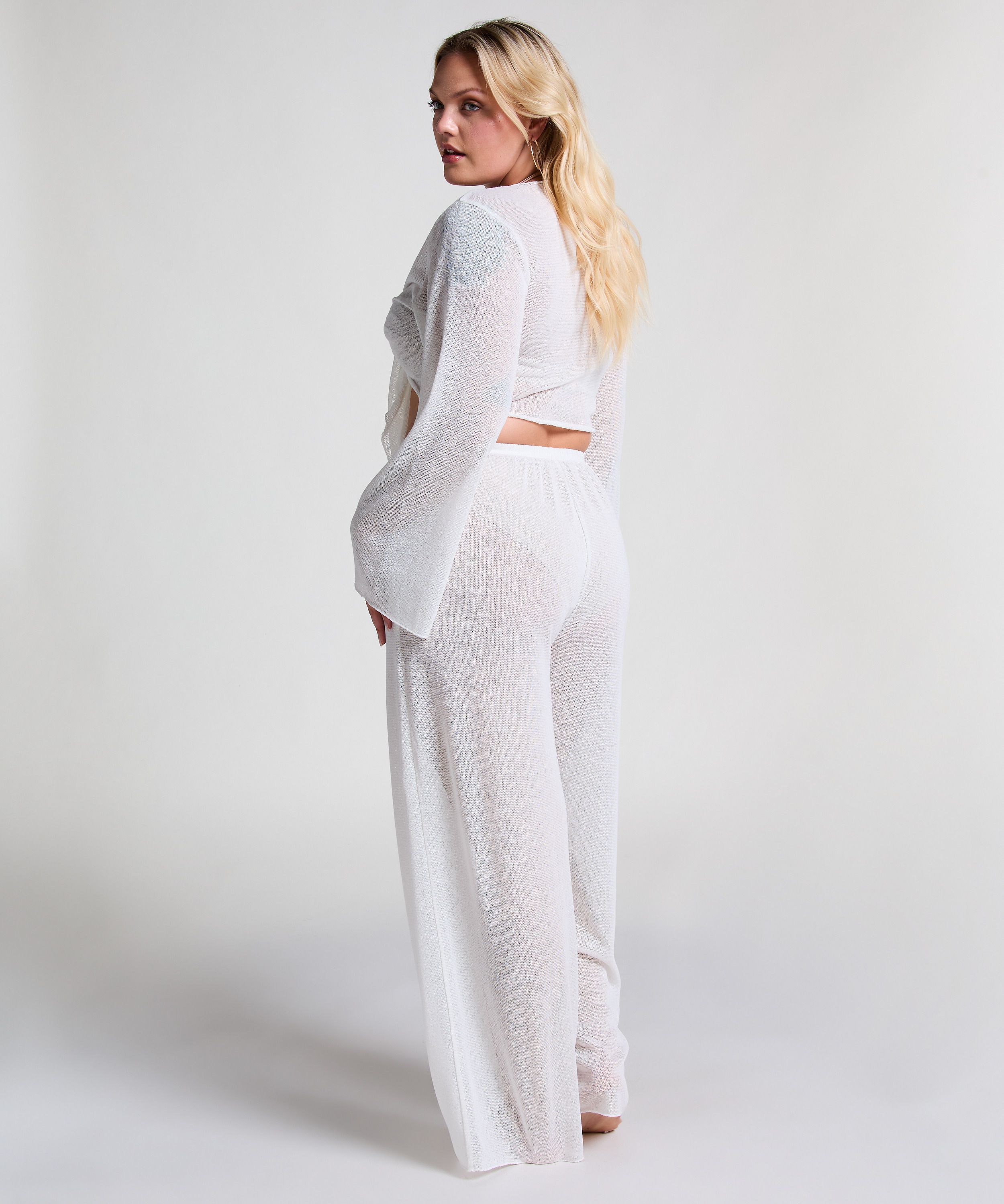 Nyd en ubesværet strandstil i denne strikkede strandtop. Denne top har et let, åbent strikdesign og er perfekt til at tage over badetøjet. Den rigtige bindelukning foran giver mulighed for at justere pasformen, og den tilskårne silhuet tilføjer en trendy vibe. Kombinér den med din yndlings-bikini for at fuldende looket!