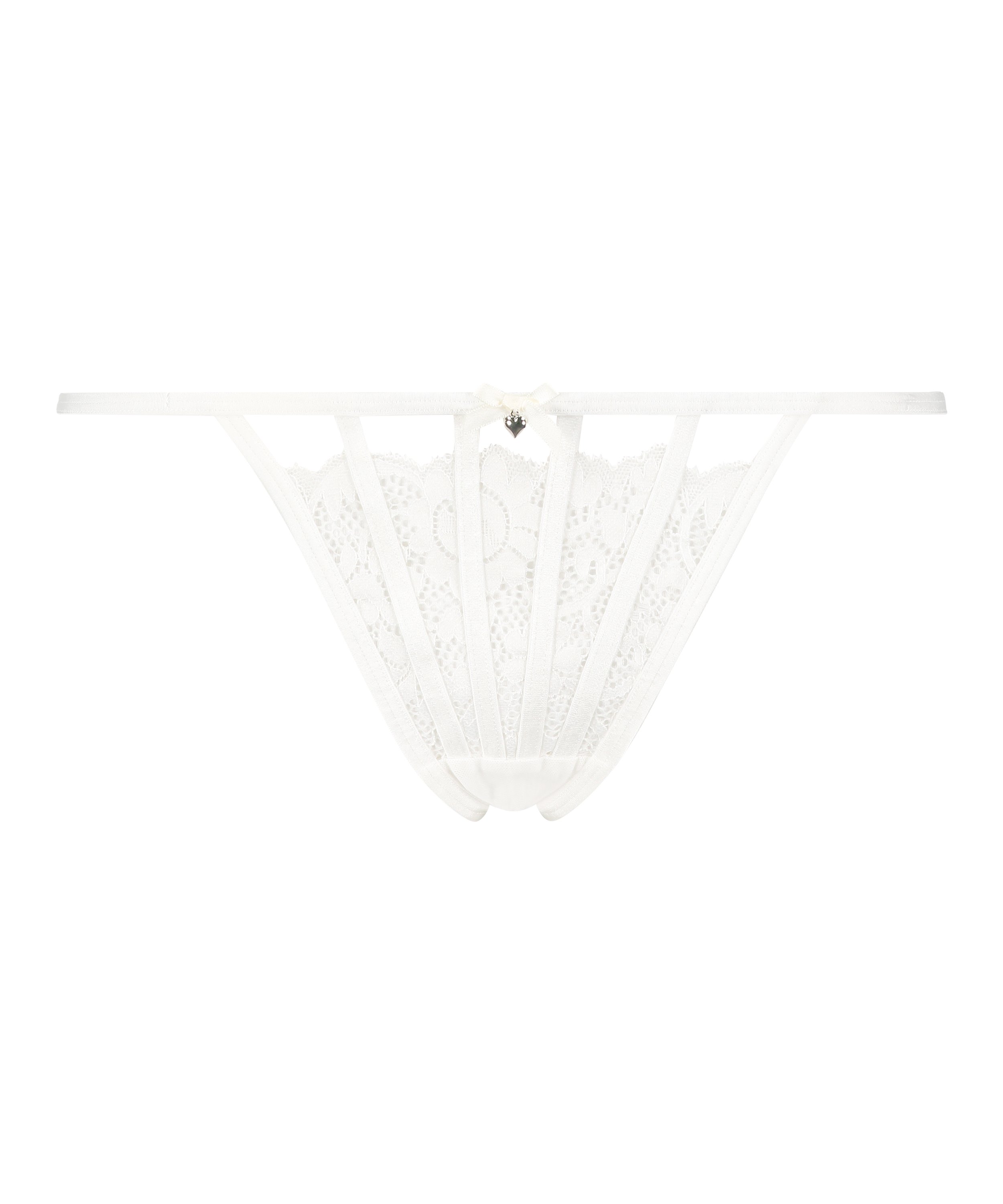 Du vil have denne flotte g-streng med strappy detaljer! På forsiden er der blonder, en sløjfe og stropper. Kombineret med en passende bh har du et komplet sæt!