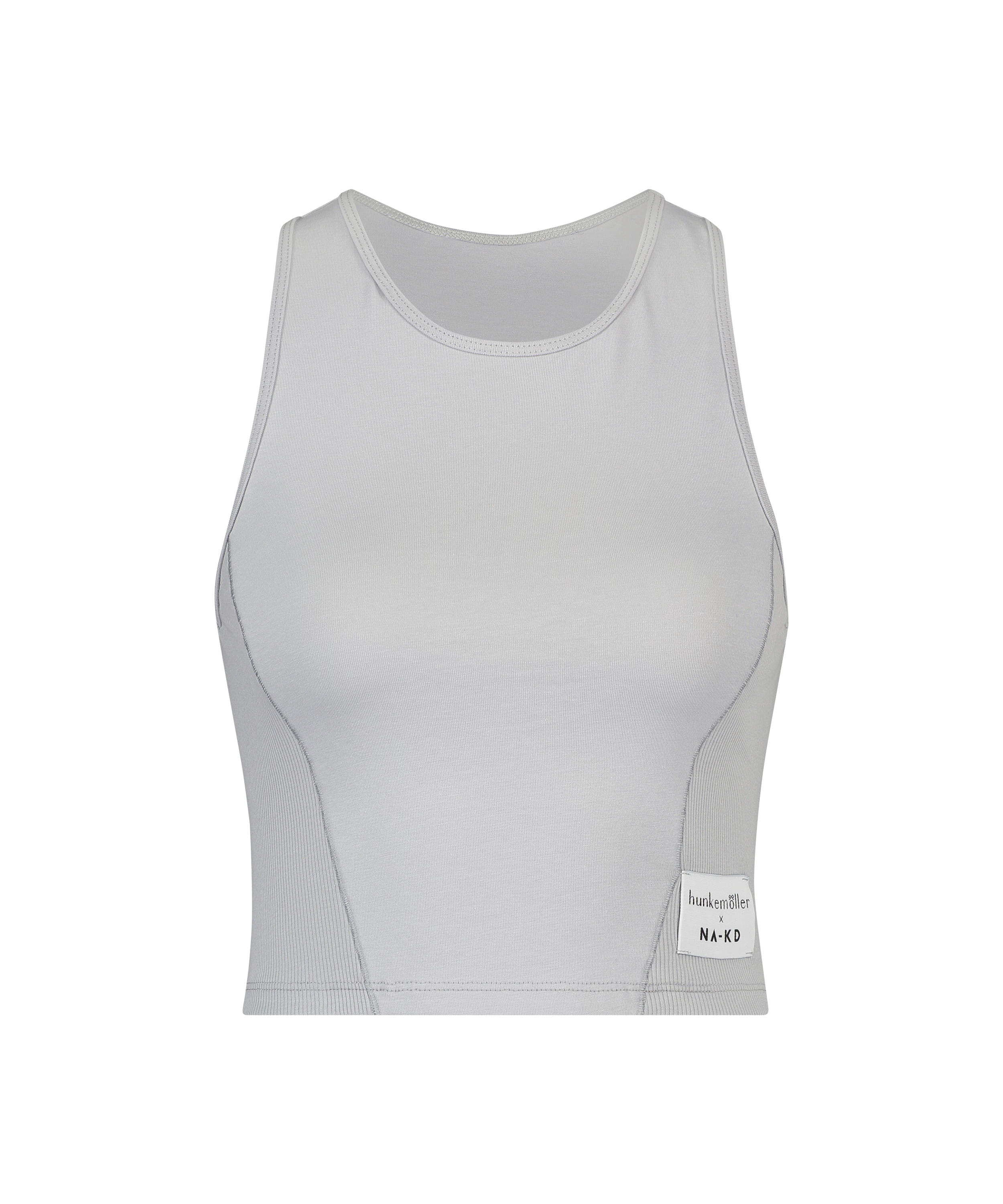 Føl dig comfy i denne top! Toppen er sleeveless og siderne er lavet af ribstof. Kombinér med de matchende leggings for at fuldende dit sæt! En del af HKM x NA-KD-kollektionen.