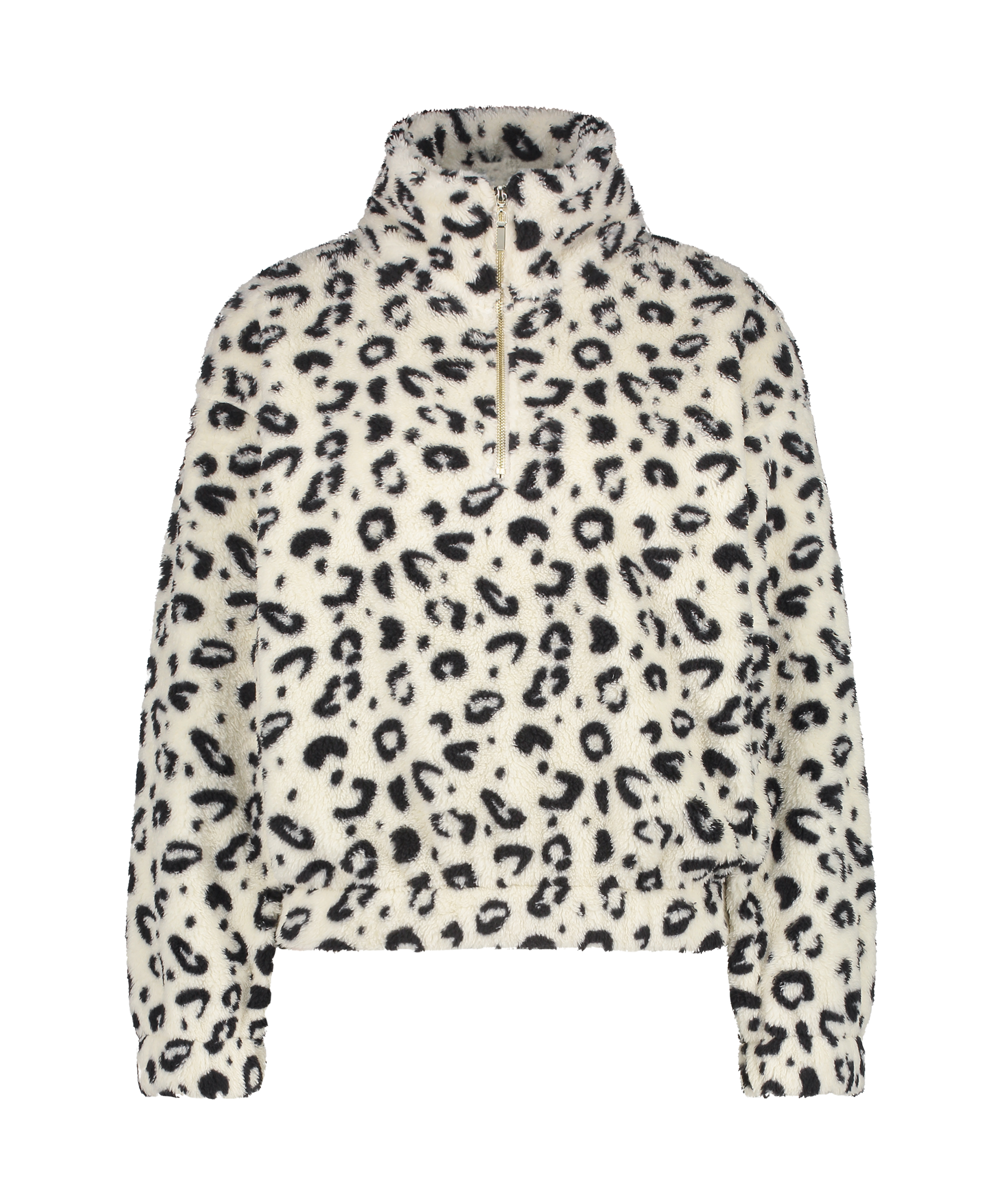 Hyg dig i denne dejlige fleecetrøje! Trøjen har lynlås foran og en krave. Match med tilhørende fleecebukser og få et smart sæt.