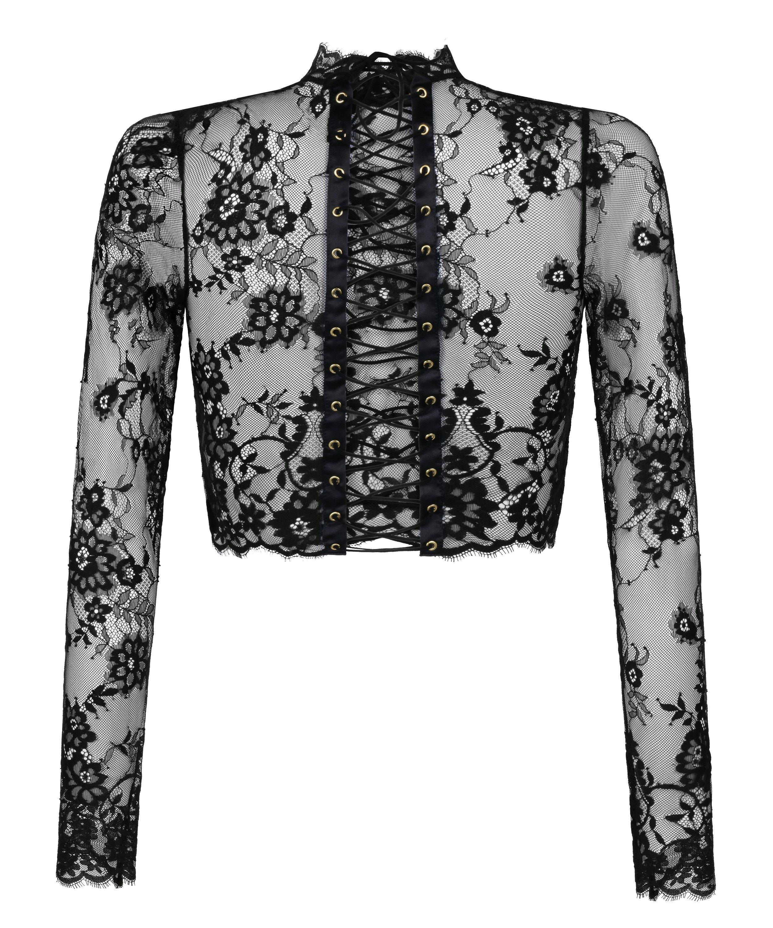 Denne super sexede top er i en kategori for sig! Toppen er semi-transparent takket være blondematerialerne. Bagsiden har sexede udskårne detaljer og en blonde, som du kan binde. Sæt den sammen med den matchende nederdel. En del af vores Private kollektion.