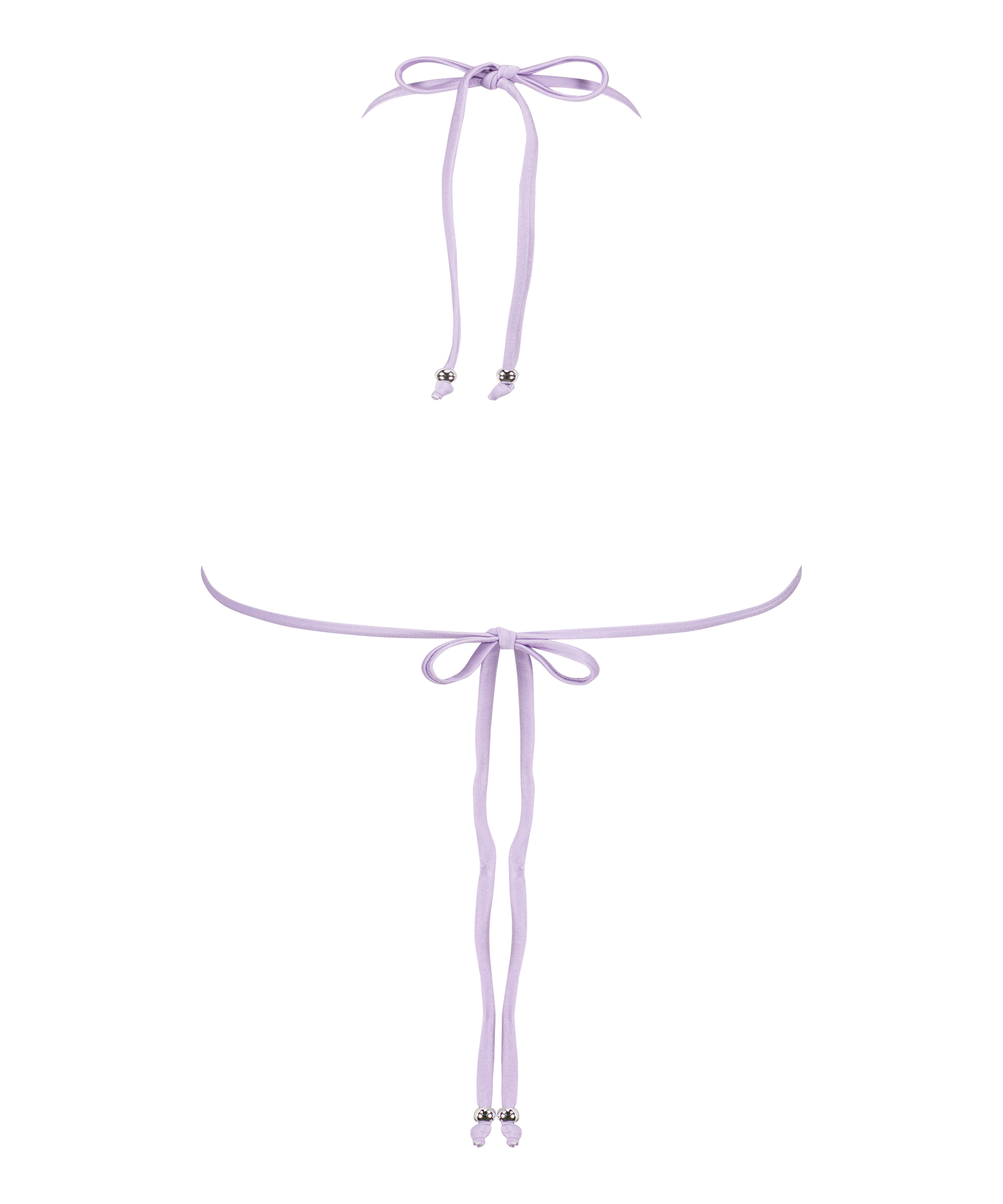 Blær dig på stranden i denne smarte trekantsbikini! Med udtagelige puder, så du kan bruge den til det hele. Med lukning bagpå og i nakken med metal. Pyntering mellem skålene. Find den matchende underdel for at få dig et komplet sæt!