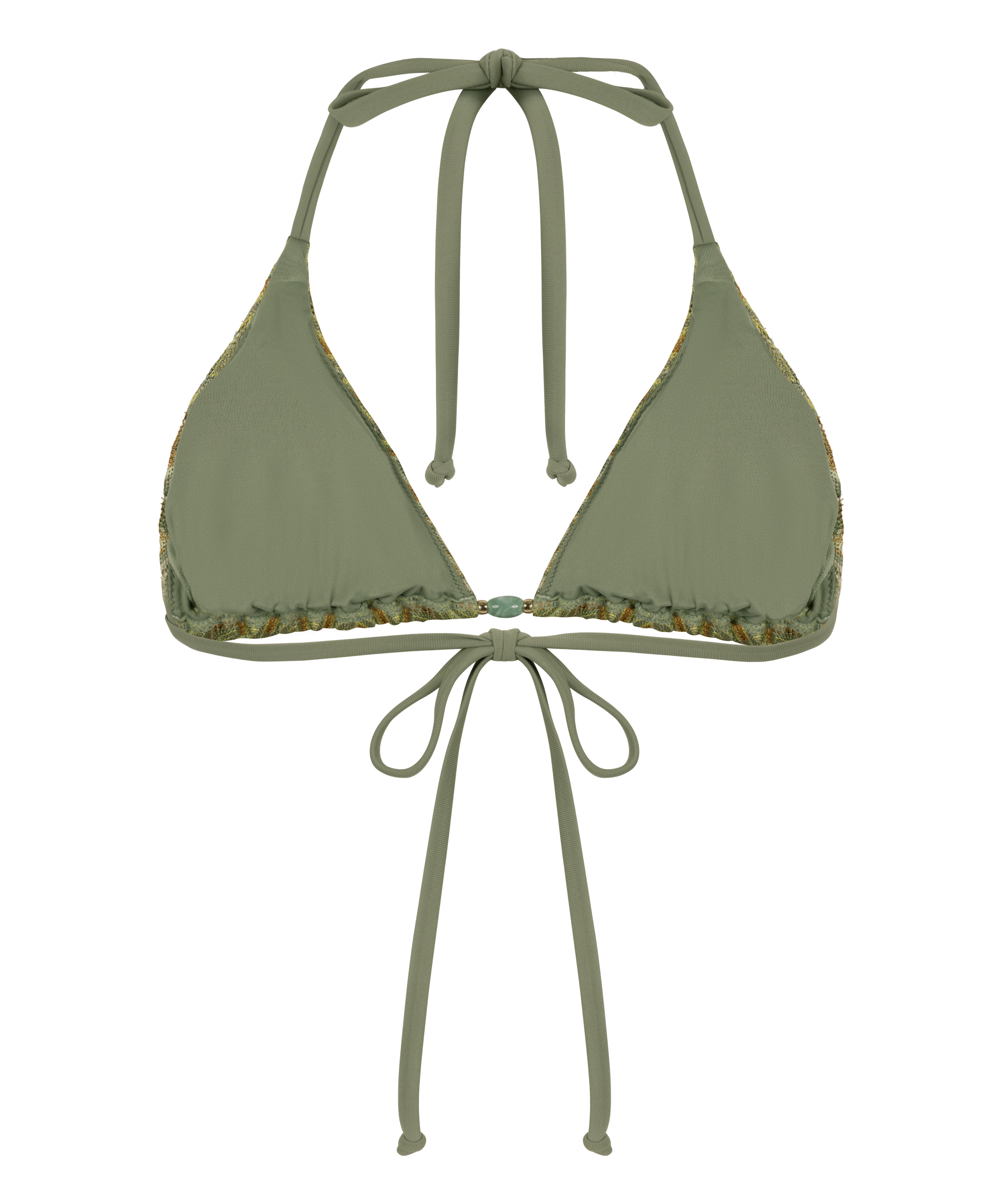 Gør indtryk på stranden med denne bikinitop. Toppens design giver et tidløst look og sørger for let støtte. Den har justerbare bindinger, så du kan tilpasse den efter din personlige smag. De trekantede skåle skaber en naturlig form, mens nitterne tilføjer et stilfuldt touch. Vores trekants-bikinier er fuldt justerbare med bindebånd i nakken og på ryggen, så du kan vælge den ønskede dækning. Ønsker du mere dækning, så prøv en størrelse større.